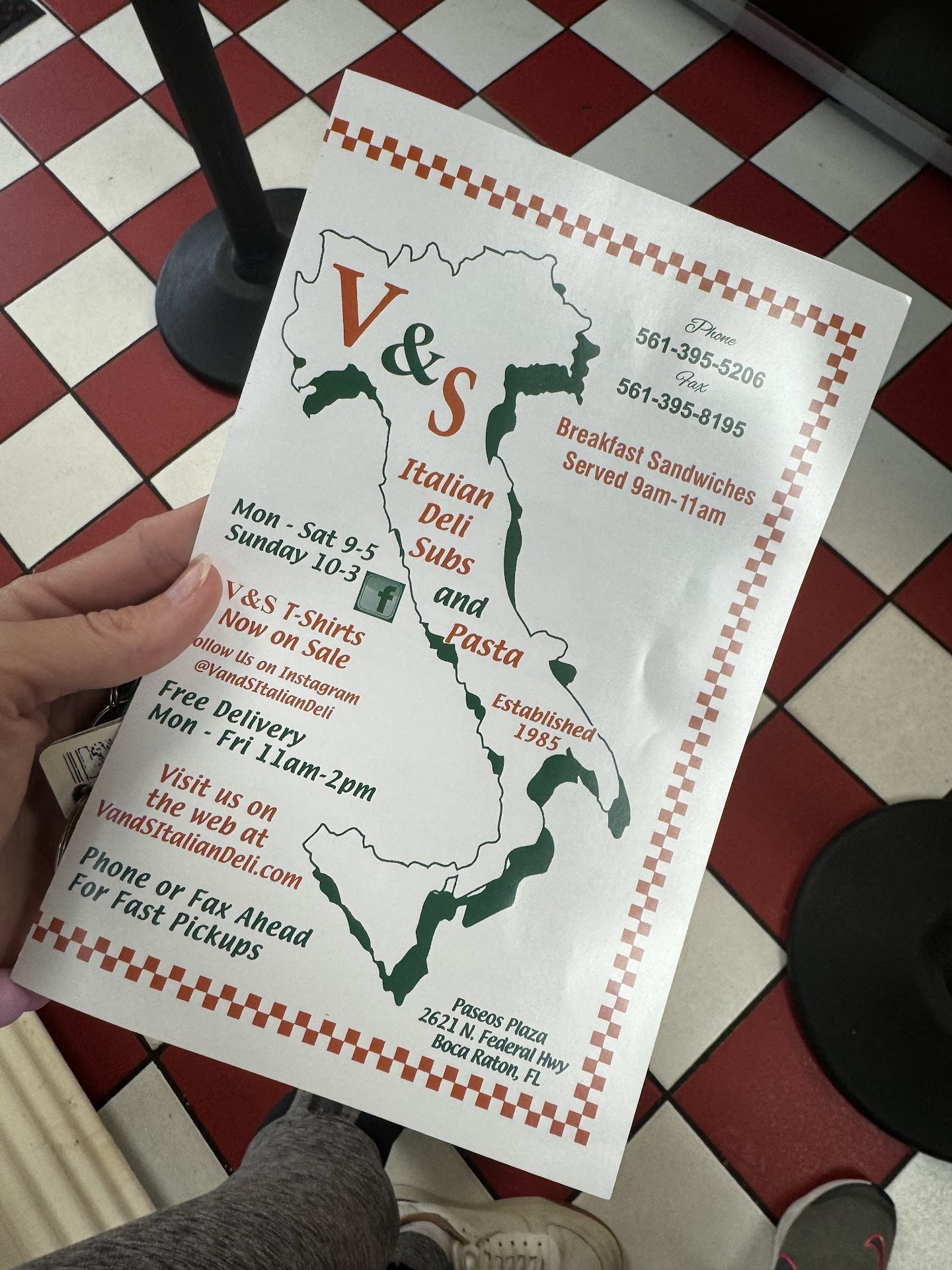 Read moreLocated in the heart of Boca Raton near the intercoastal, V&S Deli is a hidden gem that has served up authentic Italian subs and more for over 35 years that will transport you straight to the streets of Rome. From their classic Italian cold cut sandwiches to their perfectly cooked Arancini rice balls, every bite is a symphony of flavors that will leave you wanting more (if the portions were not so large.)