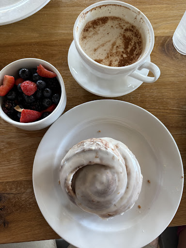 Read moreMaybe it was just me that had the bad experience but I donât see what the big deal is about this place. I order my coffee and my food. I got a Matcha latte and a cinnamon roll. They gave me the cinnamon roll right away I donât think they warmed it up. When I sat down to eat it, I asked one of the guys running by if they could warm it up for me. He said heâd be right back. I never saw him again. They took forever delivering our drinks because apparently they got the wrong number for the order or gave us the wrong number or something because she said there was a different number on her ticket then The one that they gave us for our table. My nephewâs French toast looked delicious, my nieces breakfast plate looked good, even my sister said her avocado toast was good, though it looked questionable to me. I went back and ordered a Cobb salad and some macaroons. They said they cannot do the salad to go, so I just ordered it to the table and then boxed it myself. The salad was good. I had it later. also, because I was not very hungry at the time I had the macaroons later as well as the cinnamon roll which I could heat up at home in the microwave and it was so much better heat it up. I think this day was just kind of crazy and chaotic for them. I would try it again, but as I donât live there and Iâm rarely in town, I doubt that will happen. They donât take reservations, even for the busiest day of the year. Which I find kind of crazy. Itâs a seat yourself situation. And you can sit outside too, which is nice but thereâs a lot of flies flying around. Sometimes the flies get inside. Itâs also serve your own water, get your own napkins and silverware too. Other than that, the food that I tried was delicious Once it was served and once my cinnamon roll was...