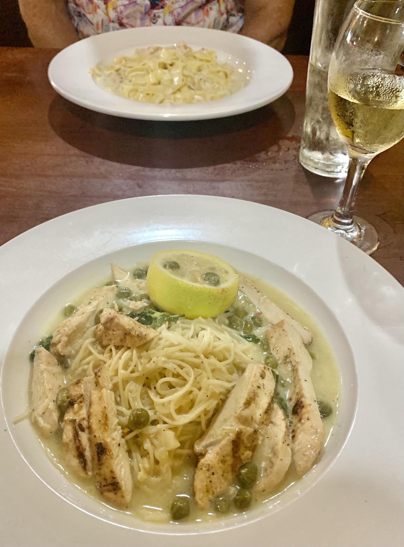Saving half of the Lasagna for lunch tomorrow was a no brainer. Now that cannot be said for the Chicken Parmigiana, this entree did not survive. It was devoured and nothing was remaining for a leftover to take home. My husband completely enjoyed this dish and if there were any issues of not cooked properly he would know. He is retired now from the food industry with the past positions of chef and kitchen manger to go back on for a reference point on food issues. And he had no issues in regards to his plate.