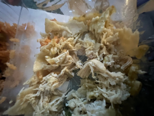 When I finally got the food, it was disappointing. The green salsa I requested was missing, and I only received the roasted salsa meant for the chips. The actual meal looked like it came off the kids' menu. The container was half empty, with barely any beans or rice, and the enchiladas had no green sauceāthey were cold and dry. I ended up using the chip salsa just to make them edible.