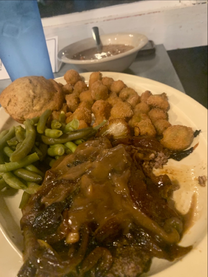 Read moreYou order at the front desk, get your own food, and clean after yourself. If you need bbq sauce or other, you must get up, and we did several times. They were gracious to give it to us, but after leaving a 15% for the gentlemen cooks, that’s the least we expected. The man who took our order didn’t seem happy at all. He seemed frustrated to take our order even when the restaurant was still an hour from closing and empty. There was just a couple aside from us. Anyhow, I understand that this may very well just be his personality. He still took our order as we wanted, but it would have been nice to be welcoming! A smile or cheery person would have helped them move to a three. The food was edible. We all ate our food. The price was fair, too, and the servings are nice. You will not be short changed when it comes to serving size. However, all plates had one thing in common: They had no salt. When we realized the sides on our plate were bland, the okra, mash potatoes, green beans, etc, had zero salt, we realized they must serve a bigger elderly population or a white population. Possibly or not! One thing for sure is living in South Texas makes it very difficult to not want flavor! It reminded me when I went to a Memorial Day Picnic with our church, and we have a lot of elderly white families who cook the same way. My kids had a hard time enjoying the food. No offense! They are healthier for it. If you like food cooked this way, this is a great place for you! It’s standard American food you will love. However, what makes it difficult is that we are not used to this. My base always has butter or oil, garlic, pepper, salt, and other spices of choice. Again, if this is not an issue for you, and you grew up eating saltless food as a standard, you’ll love it. I had their liver and onions, and my plate was amazingly filled with taste! It was the okra and green beans that were clean, devoid of flavor. My son and daughter said their steak was good, but their sides, mash potatoes, okra, green beans, were bland. The mac had flavor because of the cheese. Anyhow, we ate all our food regardless, and we enjoyed it in spite of the lack of flavor. Their bran muffins were very good because I’ve always loved bran muffins, and they were kind in giving me some honey I requested. I would return someday. Maybe I’ll remember to ask them to season my sides with pepper and salt when they are cooking my food, and who knows,...