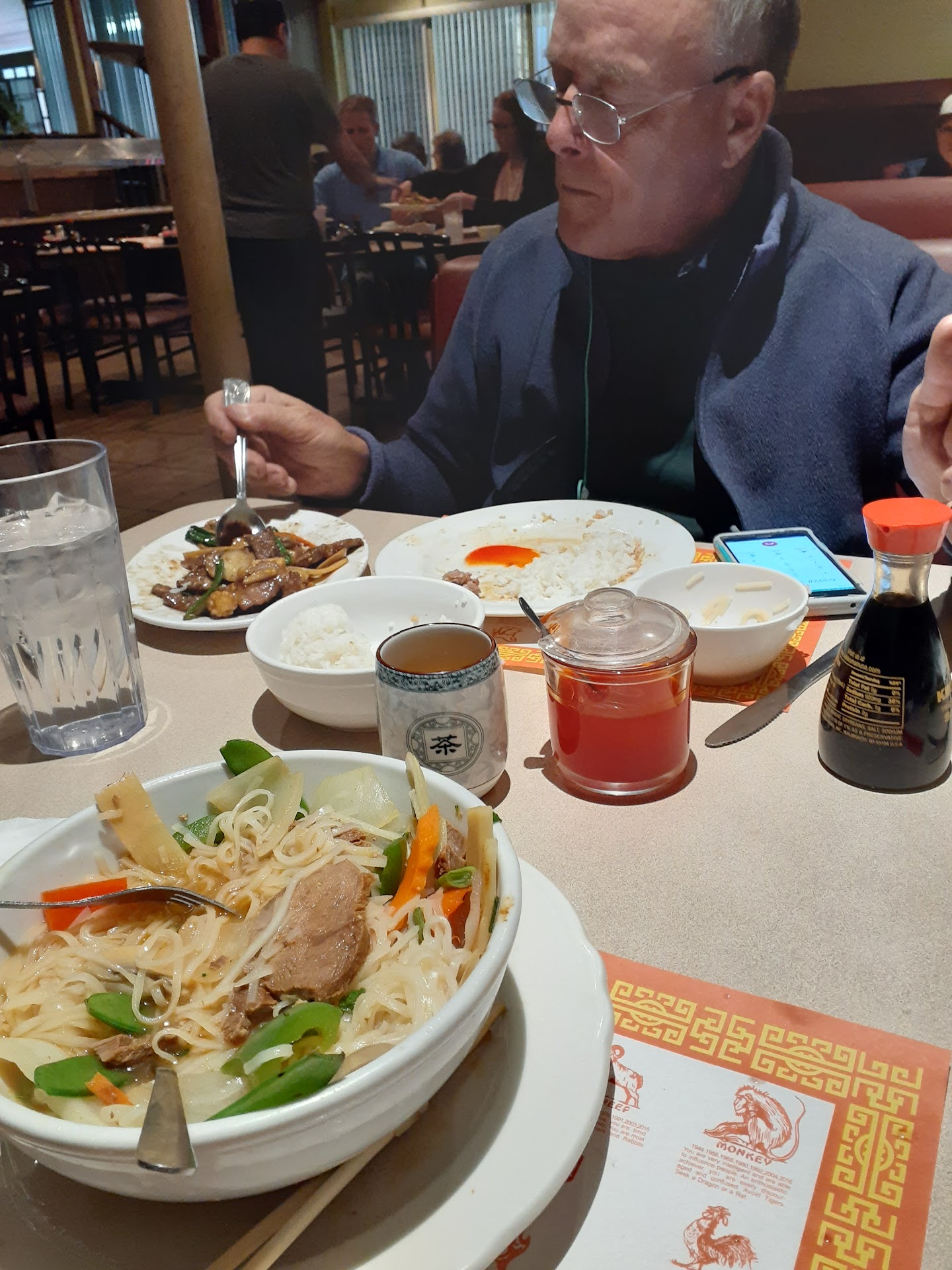 Read moreMy husband and I were in town visiting family, and we were looking for a hot meal after a cool, windy day out in the sun: we are so happy we found this cozy, warm Family restaurant, and met Alan, the owner, who treated us royally and served us the bbq pork rice noodle soup, which is excellent! I believe this is authentic Chinese cuisine, with delicious broth, tender al dente steamed vegetables, mushrooms, everything was perfect. The ambience was very casual, and family friendly. Families with younger children, were quietly enjoying the silent film with subtitles: very cool for kids, I would think. We enquired about gluten free dishes, and were delighted to discover that the restaurant offers an extensive GF menu, which includes many of their dishes: my niece loved the egg drop soup, and they also enjoyed the gluten free chicken lomein dish. So I would call it Win-Win whether dining in the restaurant, ...
