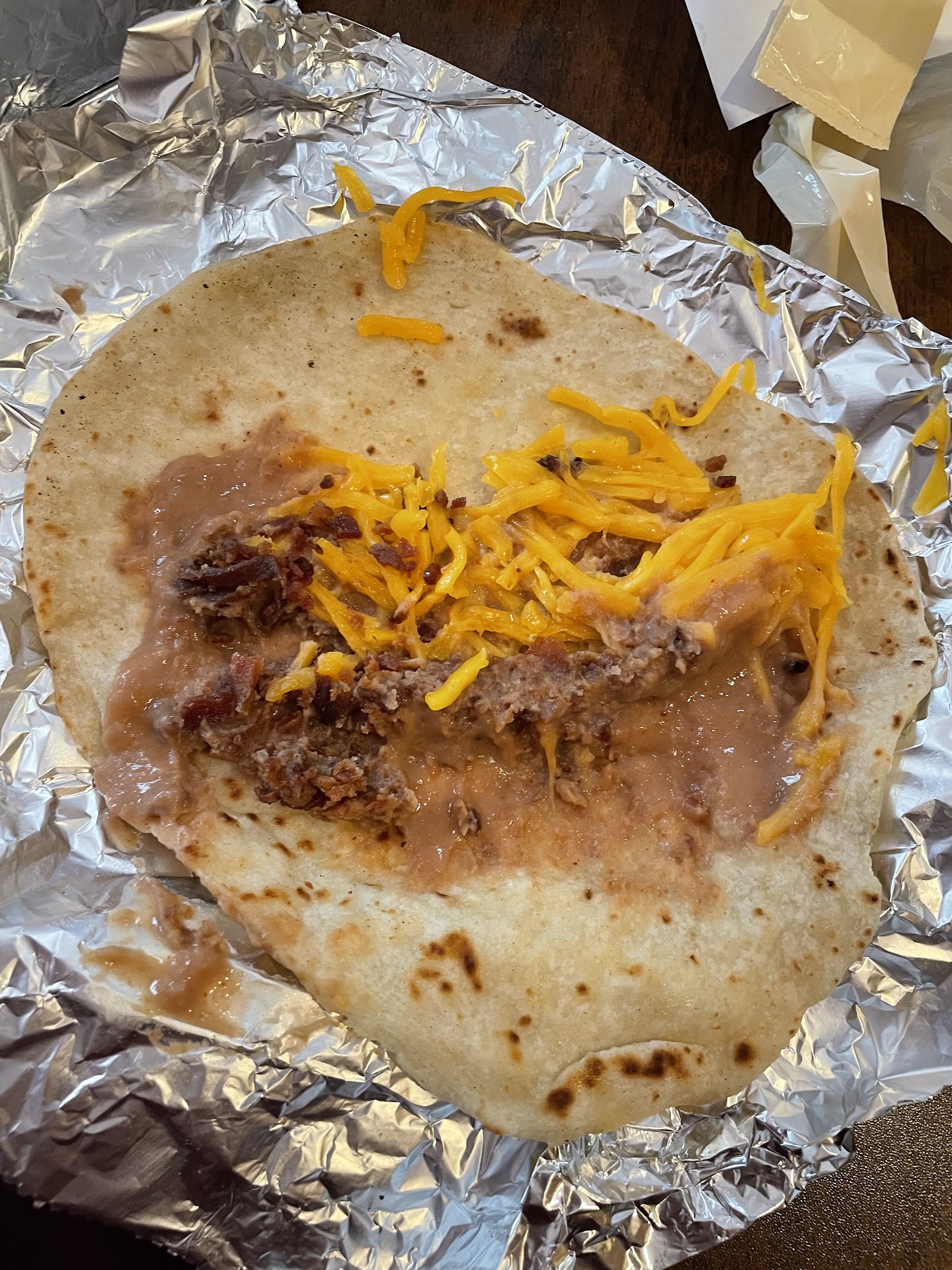 I am referring to the "quesadilla" on their menu, which, for the record I have ordered this way for years and up until about a month ago never had any issues. It's listed as Quesadilla with cheese and up to 4 ingredients - so we order, specify the ingredients, and now have just been getting cheese and a tortilla - NO INGREDIENTS ADDED AT ALL. We ask them to please fix it and they are rude, saying we instead have to build a custom, more expensive taco, and then click the "make it a quesadilla" button - which costs $1.75 extra. This item is no bigger than a standard taco - yet if I build it how they want me to, it will cost over $6 each vs the normal $3. Years of ordering them at the 3 price point, with my selected ingredients, never an issue.