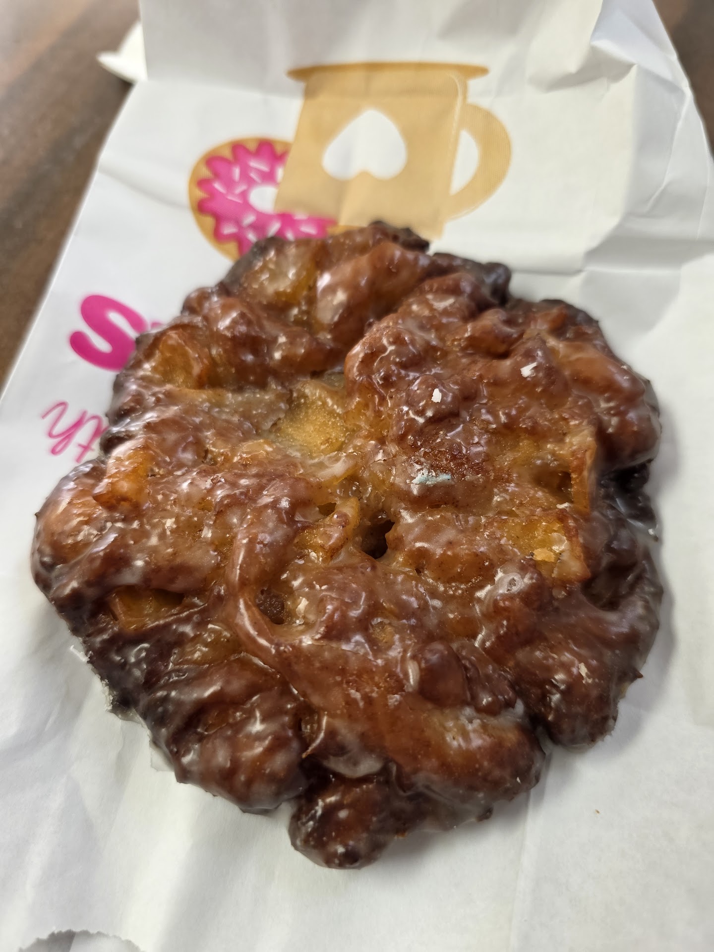 Read moreI love apple fritters and this might be the best one I've ever had. The inside was soft with nice bits of apple and the outside was sweet and chewy. Flavor was fantastic and it wasn't overwhelmingly sweet like they are some places. I also enjoyed the old fashioned but for me the fritter was the star of the show. The young lady that helped me out was very pleasant and between customers she kept busy cleaning. It was nice to see that she cared and didn't just pass the time between customers scrolling on Instagram. Clearly a local place as the guy that came in after me clearly knew her and they had a conversation about a number of things while she put his order together. If you're in the area it is definitely worth the trip. As for the atmosphere, it's more or less a Mom and Pop style donut shop. It's not new. It's not fancy. But it is clean, delicious, and reasonably priced I think my breakfast was $4. So who cares...