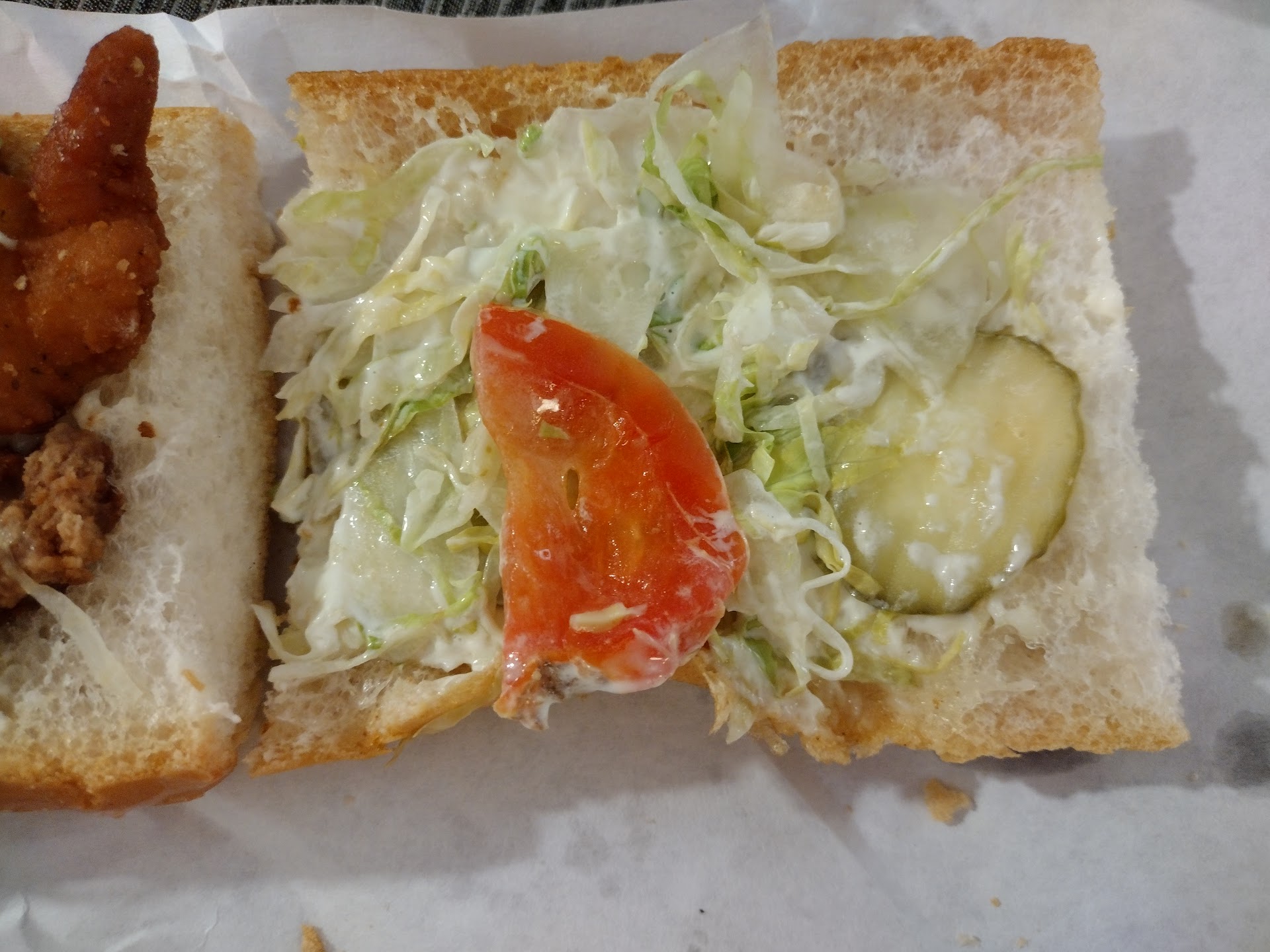 The roast beef poboys were soggy. The salad was almost the core of a head of lettuce on a plate. They didn't bother to break it up and obviously not wasting a bit of lettuce. Since no knives are in the dining area, this meal was hard (literally) to eat. The fried oysters were from a jar-- very small and almost over done. Our visit was in April and fresh oysters were available.