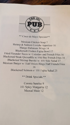 Read moreI was sitting at the bar, minding my business, when the busboy made his way over to drop some dishes. The guy who I assume is the owner of the bar (his pictures are on the website) shouted over to him from down the bar, how he felt if somebody could "tag team his sister" and had a laugh with pals. The busboy, right in front of me was caught off-guard and muttered, "really?" I was shocked, too. How immature do you have to be to treat your employees like that? The owner cashed me out, not saying a word to me or looked me in the eye. I wanted to think that maybe it he felt shame, but that's how he treated me the first time I visited the bar. I even asked for a drink off the menu, and he responded, "Oh I don't even know what's on this menu, but whatever." So he's immature AND incompetent. What a shame -- I just moved nearby and was hoping to find a new watering hole. The 101 Pub certainly...