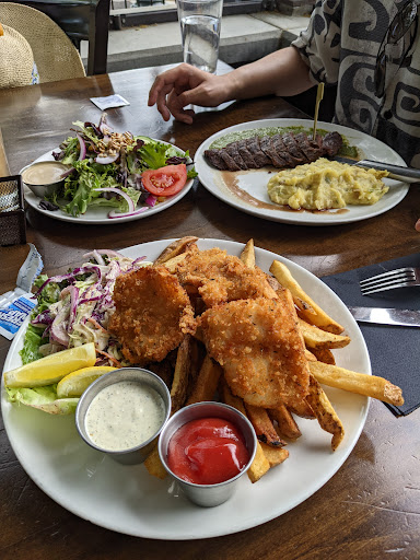 Read more3 of us went there yesterday for a birthday lunch. First time there. Food was good; love the hot fresh cut fries. Fish & Chips were excellent. Most fish served like this is heavily breaded with a butter milk batter and is way too much breading and very greasy. But this product was very good. Service was good. A couple of negatives; the tables are sticky and need refinished. Also, this is an open air place when the weather is nice, like today. No screens in the windows. Don't appreciate doing battle with the bees and flies while trying to eat and have a conversation, hence the 3 stars. May come back when it's colder and the windows are closed and try it again. BTW...the response below seems to assume we were sitting outside. We were sitting inside to avoid pests. When the windows are opened and there are no screens, the bees and flies get inside. Flies are some of the filthiest critters around. Having them on your food is disgusting. You should make more of an effort to keep them out of the restaurant dining area. I've been in food service for 35 years. I know of the problem and how hard it is to deal with. But leaving the windows open without screens? How is that going to help? UPDATE; on Father's Day, after a nice afternoon ride on the Harley, we stopped for a mid afternoon dinner. The food and the service were excellent. Being a warm/sunny day it was nice to have the misters on. We enjoyed it so much, four of us are going there for...