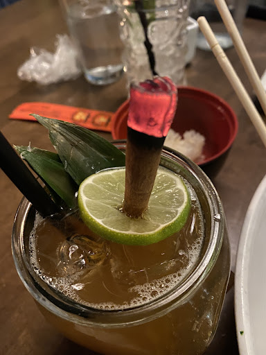 Should I get another? Of course, I should because it's free! BOGO ... I couldn't decide between the house Mai Thai or the or the smoke show. I asked the waiter and he was 100% invested in the smoke show, which is: Bulleit, rye, Benedictine, Peychaud, burnt pineapple, with baked pinecone smoke. When it was brought over you could smell the smokiness... mmmm it was good n strong.