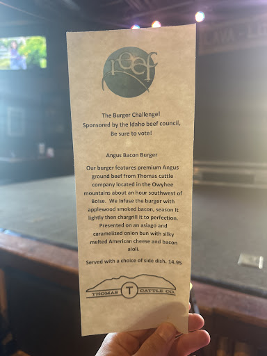 Read moreWe have never been to the Reef until Saturday the 29th, my wife was able To call in and schedule a party. Kenzie helped her book the private room for her best friends 50th birthday, the room holds up to 30 people, it was so nice to be able to have an area where we could all move around and visit with everyone. My wife discussed with her about the details on how she wanted everyone to arrive before us, And how when we showed up we wanted it to be tina party of three. Walking in, the blown glass theme up the stairs and through out the restaurant is gorgeous. The restaurant allows for children to be there. Anyways Kenzie walked us back to the room and the surprise party was a complete success, if it wasn’t for Kenzie and staff this party wouldn’t have been as good. Our waiter was Kobe, he was incredible as well. Friendly, fast paced and just an amazing waiter to put up with our crazy shenanigans. The drinks and food were so very good, we will definitely be back for sure! We were even able to bring our custom birthday cake, 5 dozen roses, presents and party horns. We will definitely need to schedule more parties there! I was so beyond happy the surprise party went off without one single problem, and like I said the staff were all so incredible and friendly!!! 100/10- if you’re trying to decide if you should go there —— DOOOOO IT! If I had any complaints it would be, don’t order the jalepeno margarita if you don’t like pickled jalapeños, I really don’t like anything pickled but my body really really enjoyed it, said it wasn’t too spicy, so it’s good, just as long as you like pickled. But seriously that’s just a personal preference thing, when I told Kobe it helped me find a better drink and my gosh the huckleberry mojito is so damn good!! Birthday girl and a signature cocktail, it is not for the light at heart - prepare for a good...
