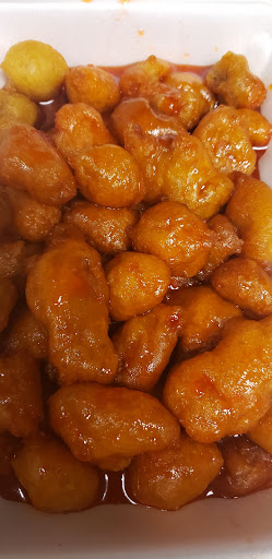 Entree:: Mandarin Chicken - The Mandarin Chicken was my entree of choice. It was accompanied by steamed rice. There is the option to "upgrade" from plain White Rice to Fried Rice. But, it will cost you a couple dollars. The chicken was overpowered by the Sweet and Sour sauce provided. Although, the texture was very pleasant and to my liking.
