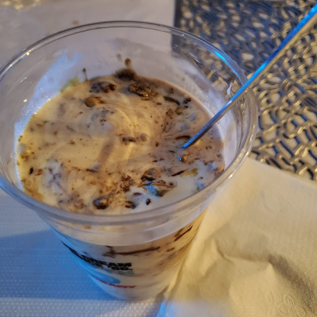 WOW, ANDY'S FROZAN CUSTARD IS NOW IN ONE OF MY TOP FAVOURITE DESSERT SPOTS!!! UNFORTUNATELY, FOR US, WELL, WE LIVE IN CANADA ACTUALLY, AND SADLY, CANADA HAS NO BRANCHES OF ANDY'S FROZEN CUSTARD. WE ACTUALLY VISITED BOLINGBROOK, TO MEET MY DAD'S OLDER BROTHER AND OUR COUSIN SISTERS. SINCE MY COUSIN BROTHER (WHO WAS ACTUALLY ALSO VISITING OUR COUSIN SISTERS), REALLY SUGGESTED THAT WE GO AND EAT AT ANDY'S FROZEN CUSTARD, BECAUSE HE LOVES IT AND HAS EATEN HERE BEFORE. SO, WE DECIDED TO EAT SOME FROZEN CUSTARD AT ANDY'S. I ORDERED JAMES BROWNIE FUNKY JACKHAMMER (IMAGE ATTACHED), AND IT WAS SO GOOD. SOMETHING A LITTLE BIT OFF ABOUT ANDY'S, BUT INTERESTING AT THE SAME TIME, WAS THAT AT LEAST 3 PEOPLE GOT A SIZE OF THEIR FROZEN CUSTARD BIGGER THAN WHAT THEY ORDERED. SO FOR EXAMPLE, SOMEONE ORDERED SMALL FROZEN CUSTARD (IDK ABOUT FLAVOUR), AND THEY RECEIVED MEDIUM. AND I REMEMBER ORDERING MINE MEDIUM, BUT THEY GAVE LARGE INSTEAD. NOW I WOULDN'T COMPLAIN ABOUT IT, OF COURSE, BECAUSE RATHER ONE WOULD BE HAPPY TO PAY FOR A SPECIFIC PRICE, AND GET THE BIGGER ONE, RIGHT? BUT I WAS KINDA FULL TO FINISH THE WHOLE, SO I HAD TO FINISH MINE THE NEXT DAY LOL. OVERALL, I WOULD HIGHLY RECOMMEND GOING TO ANDY'S. AS I SAID, IT IS STILL IN ONE OF MY FAVOURITE DESSERT...