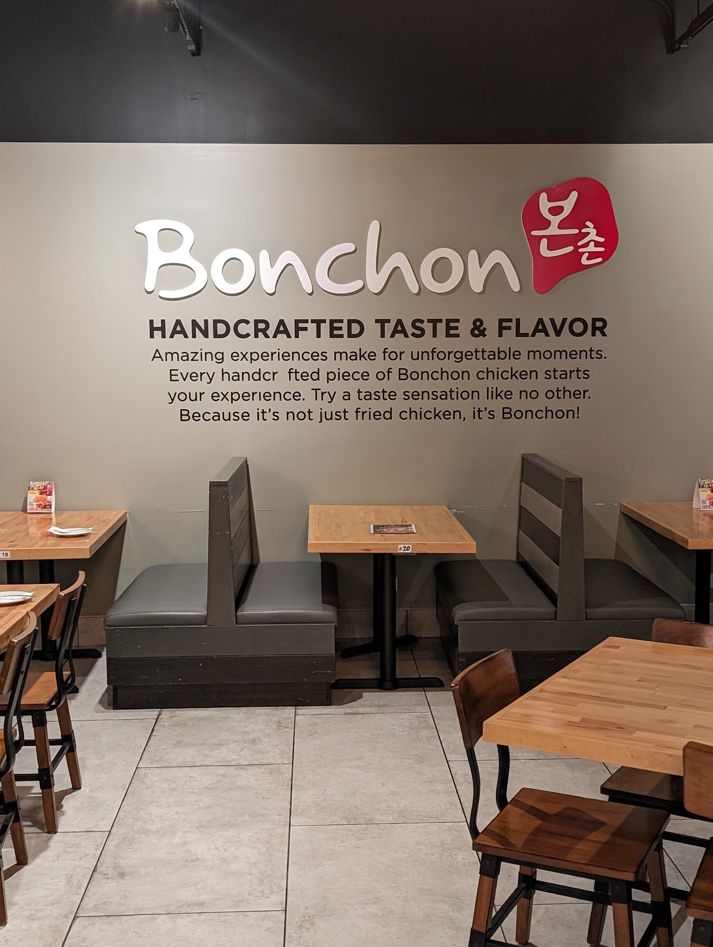 Read more(+2.175 âď¸) Food & Drink: having only been recently introduced to the Bonchon establishment by a friend & colleague, I am not sure if the in-restaurant bar is a standard fixture or something that is unique to this location. Regardless, there are an abundance of beverages (both U21 and 21+) to select from whether one is dining in or carrying out.