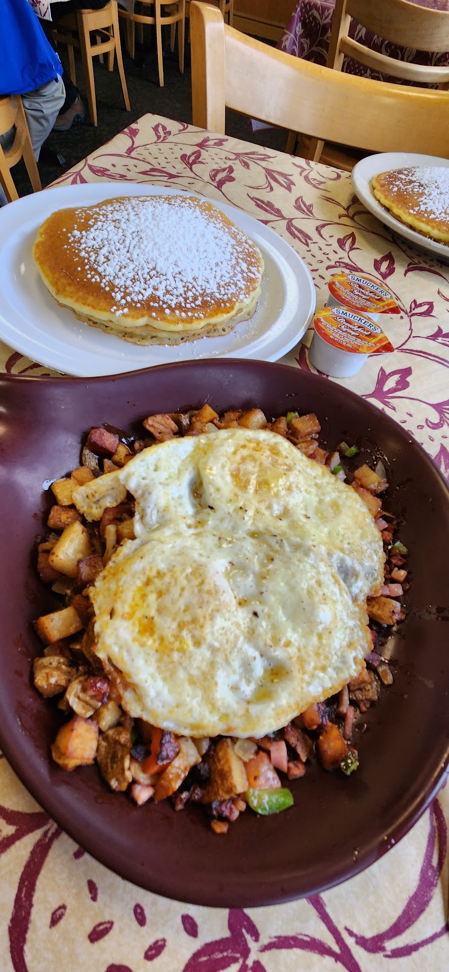 Unfortunate experience with the male server on the patio. It was a busy morning, but we waited over 30 minutes for our food and were there for over and hour and 20 minutes with understandably at first, little interaction from staff.We watched several tables who ordered 15 minutes after us without children get their food, pay and leave as we had to wrangle two toddlers. We were told they ran out or gravy as the food was brought out. After asking for our boxes and the check the server came out to clean tables and run food a few times before he decided to help us. I had to go inside to grab our boxes and pay without ever getting the check from the server. My husband had to leave with two screaming toddlers, and they cleaned the table within seconds after ignoring us most of the time, and threw away over $30 of food in the trash before I could get back to the table and wrap it up. Super frustrating because it seems he took our table when another server who was busy, but still efficient was going to take care of us. At this point I regret struggling to pay and leaving a tip, but that’s just not our style. Avoid the male server or busy days if you have small children. This was all not to mention an order of sausage links being forgotten and when they did arrive, they were most definitely microwaved based upon part of the rock hardness and appearance on parts of each of them. Also no grill marks compared to the other set. Regardless, the best way to handle tables with children is to get them their food right away, even if it’s only part of the order, especially when they immediately ordered when first greeted and are obviously not trying to hang around too long. Hard to believe this was a kitchen mistake over a server mistake. It’s a shame to have a sour taste in your mouth with such a cute place, and it feels like we wasted hard earned money. Feels like the customers are taken for granted which is super unfortunate besides the mediocre food. If you go, you’re going...