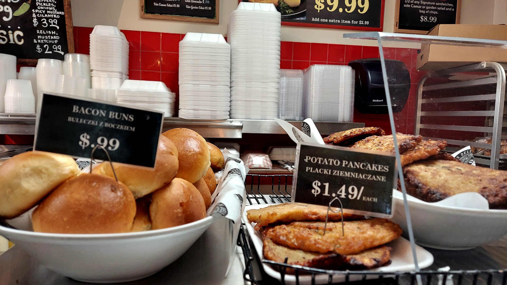 Ā Ā Ā Read moreThis place was fantastic - tucked in the corner of a hidden strip mall. The inside while small is neat and organized. They had lots of hot food options, cold food and salads, and deli items you would expect at a European or Polish deli. I tried the Cajun turkey panini - it had a jalapeno mustard which was a little overwhelming, and the sandwich was just fine but next time I would probably try a different one. The bacon buns - delicious. We got a hot plate with 3 items, cabbage roll, meatballs, and pierogi. The hot food was good, but the meatballs were our favorite of those three. We got potato pancakes - they were nice and crispy. The winner of the whole meal - the pastry. We got this horseshoe shaped cheese filled pastry dusted in powdered sugar and it was EXCEPTIONAL. We will probably stop back just to grab a few of those - my husband and I were basically fighting over it. There is no indoor seating, but a couple tables and chairs outside - so plan on taking...
