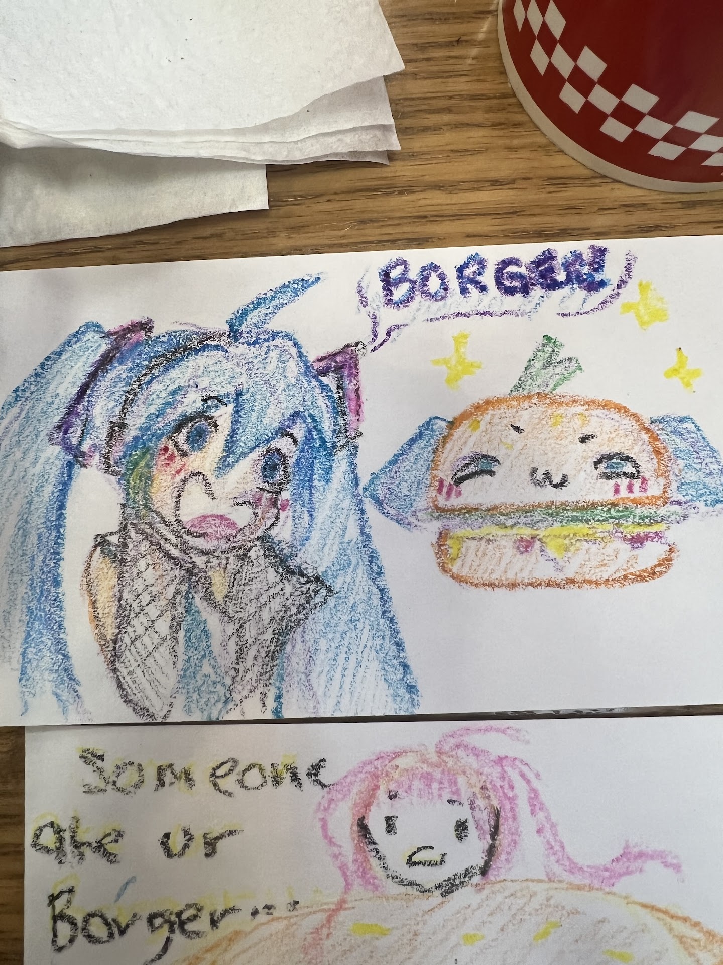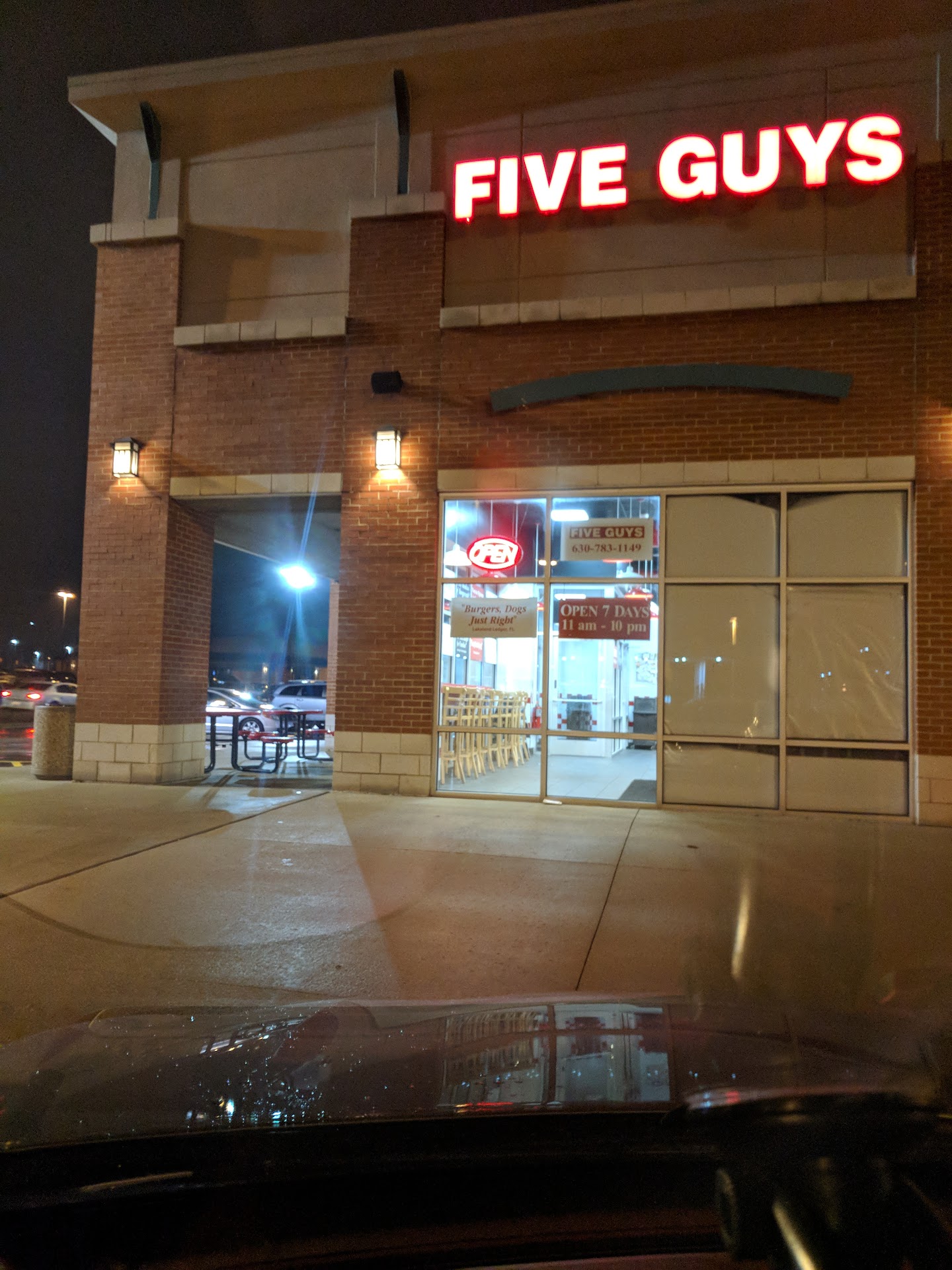 When I got the order I saw no ketchup or mustard. I also saw that they skimped on the fries. Usually five guys gives a heaping amount of fries if you order a large cajun or regular fry.