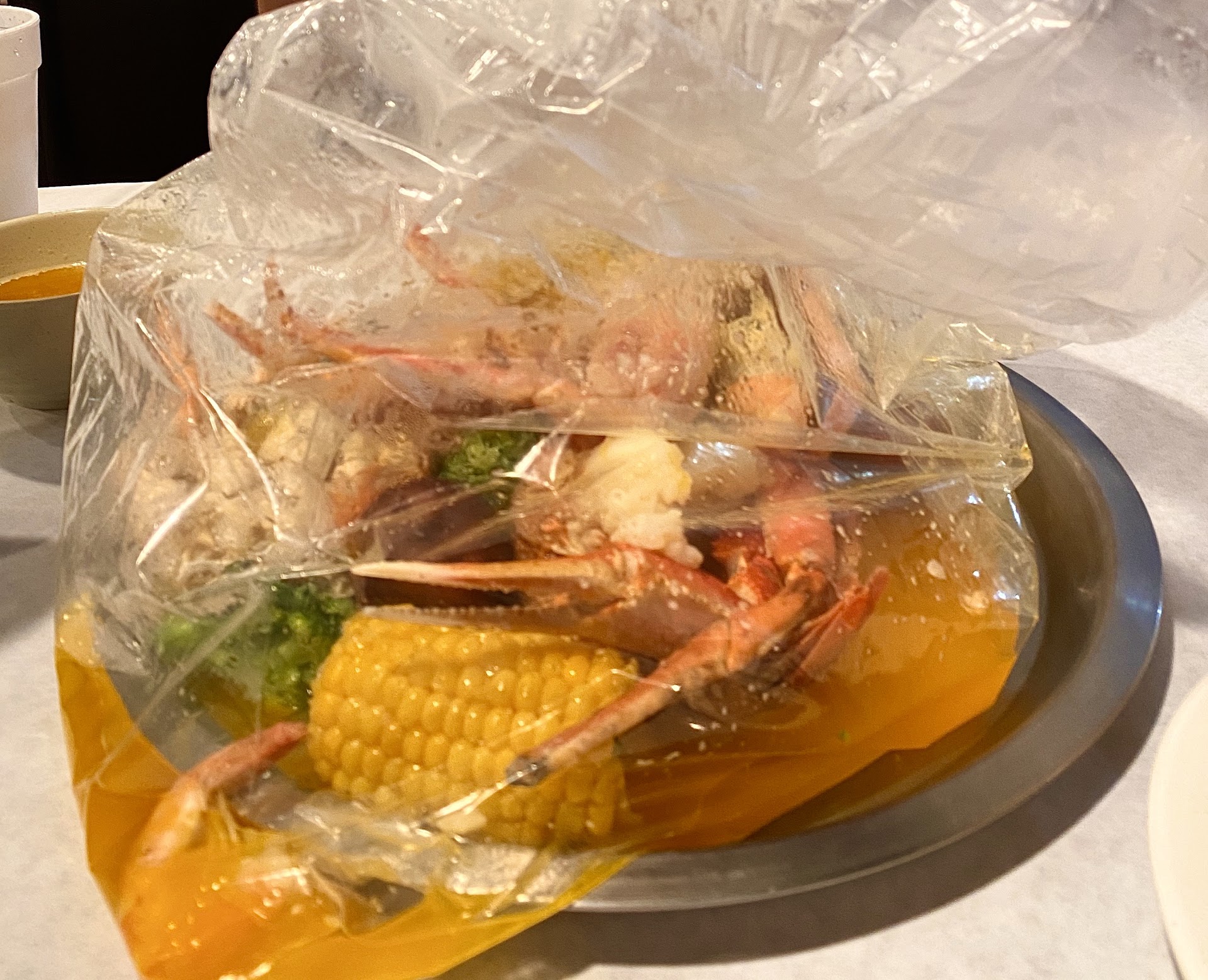Went here 2 times in the past week.From the outside the place really does not look like much.Once you enter the place is clean and not over the top fancy.I would call it more like casual dining.Our server Ivy could not have been nicer.I went here with my daughter and my granddaughter. We were seated instantly and within minutes had our cocktails and a basket of what they call...seafood bread.From what we could tell it is thick cur French bread toasted and covered in several different cheeses and topped with crab meat.FANTASTIC!!!Ivy was even sweet enough to bring us a second basket!Between the 3 of us we ordered a mix of shrimp and king and snow crab.All the dishes were served in a fully inflated plastic bag and came with corn and boiled potatoes with some brocolli. It was an interesting presentation and the food inside the bag was perfectly cooked and delicious. As an added bonus we went at a time where they were offering a special.If your bill was past 175 for the table...which after cocktail,appetizers and a to-go order our was.They gave us a free complete order to go.The food was great the service was friendly and always there.What's not to love?If you are in the area...give it a try!If not...drive to the area and try it!You wont be...