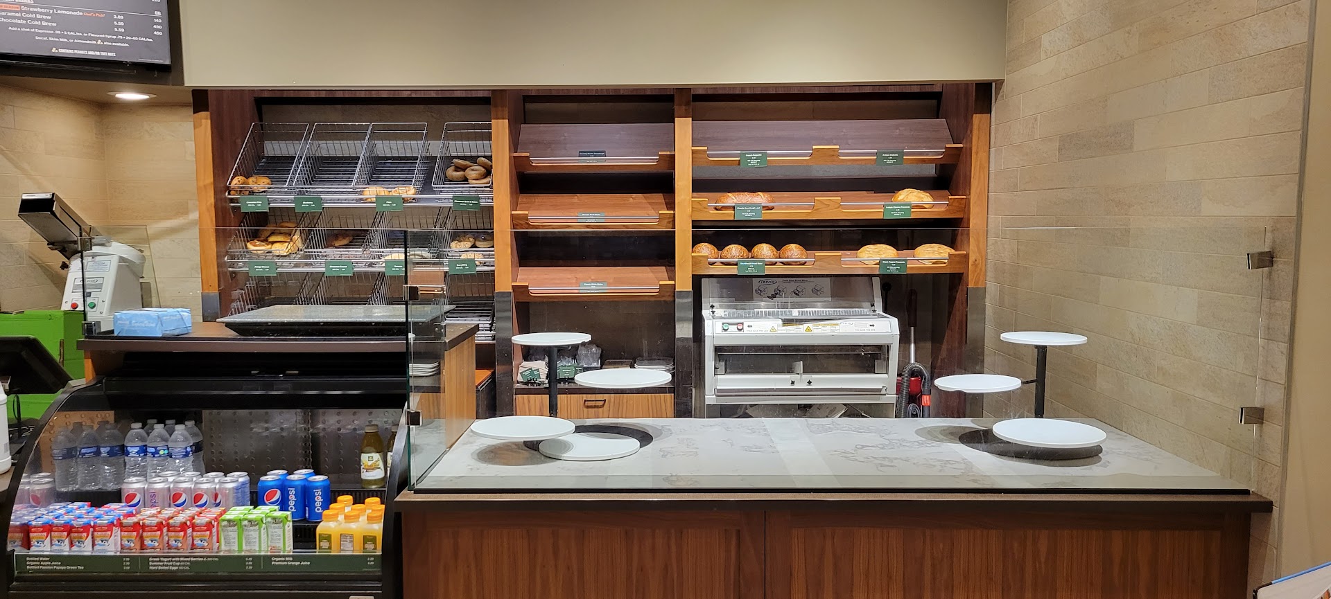 Read moreAgain we were very disappointed with the food and service at this location. We were not greeted when we arrived. I was not offered a $0.99 pastry with my Pick Two meal (although my companion was offered the deal by the counter person that took her order). Many people in line and only 2 counter people. There were only a few open tables and they were all dirty. Dirty dishes were stacked a foot high in the bins. The restaurant was about 3/4 full when we arrived but not packed. The server brought us someone else's lunch and then was annoyed when we rejected it - she asked me where I got the pager (really?). We waited almost 25 minutes for our food. No smiles and no apologies for the delay. My baked potato soup (2/3 of a bowl) was bland and only slightly warm. My Bacon Turkey Bravo sandwich was dripping with their "signature dressing" aka Kraft Thousand Island. As we were leaving, the group walking out of the restaurant door ahead of us commented on the difficulty of getting their family member (she was in a wheelchair) in and out of the store with the lack of ADA compliant doors. They said they would not be going back.... don't think we will be going back...