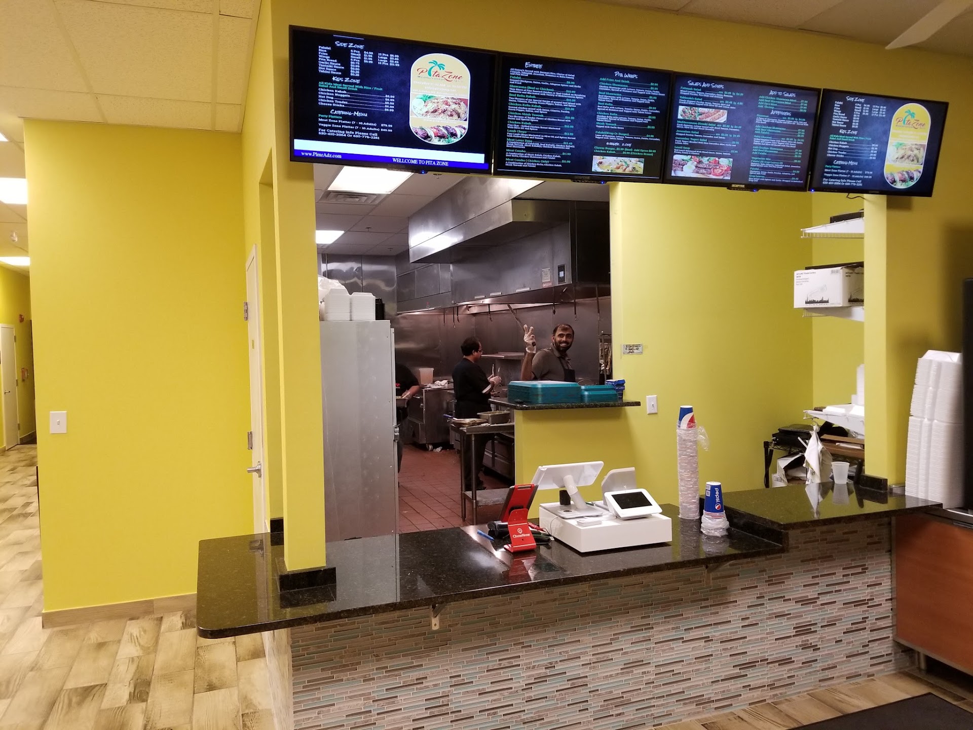 Currently open under a soft open not the grand opening. The food is delicious. The falafels are fresh made not frozen handmade to order and phenomenal. The interior texture is light and fluffy unlike those heavy frozen cornbread type falafel. They're very flavorful, not a flat grainy taste, they actually have a kick. I loved when cooking my chicken shwarma that they continuously check to make sure that it was cooked all the way through. However using the same tongs to pull the raw meat from the bin to put on the grill definitely is a drawback and hopefully rectified prior to the grand opening. The rice was moist and delicious also with a beautiful spicy kick. Nothing I ate was dried out everything was made fresh to order. One of the greatest things about this restaurant is the absolute care taken with each customer and customer service / satisfaction. That really goes far. Because this was a soft open they're working out Kinks with their Expediting. I was one of the second people in and two in from the phone and still waited 32 minutes for my food. It has to be noted that they did not expect the volume of business with a soft opening that they got. They make no excuses for anything and are very open to suggestions but they need that chance to be open to find the glitches including their expediting and how they put their food in holding. The latter of the two already being noted and was supposed to be discussed amongst the owners the day after as we spoke. They have beautiful artwork and amazing lanterns for Decor they had three TVs, two on different stations so the noise was a little much having two different stations and two different volumes turned on and their menu is so unbelievably small it's not value added to the restaurant. The menu however looks beautiful it's just too small and I love that there's no handwritten signs there's nothing half-assed in this restaurant at all, not even junk on the counter, they did a really nice job. The food is just absolutely delicious and the serving portions are perfect size. Pita Zone is one of my favorites new to town. The staff is very friendly, the staff is knowledgeable, the staff appears to be trained and again the only glitches: timing and expediting, something that could change with time and experience. My Hope Is that they continue the high standards of quality and cleanliness and customer service that they've put forth in the soft opening.... And use different tongs to pull out raw meat and cooked meat...