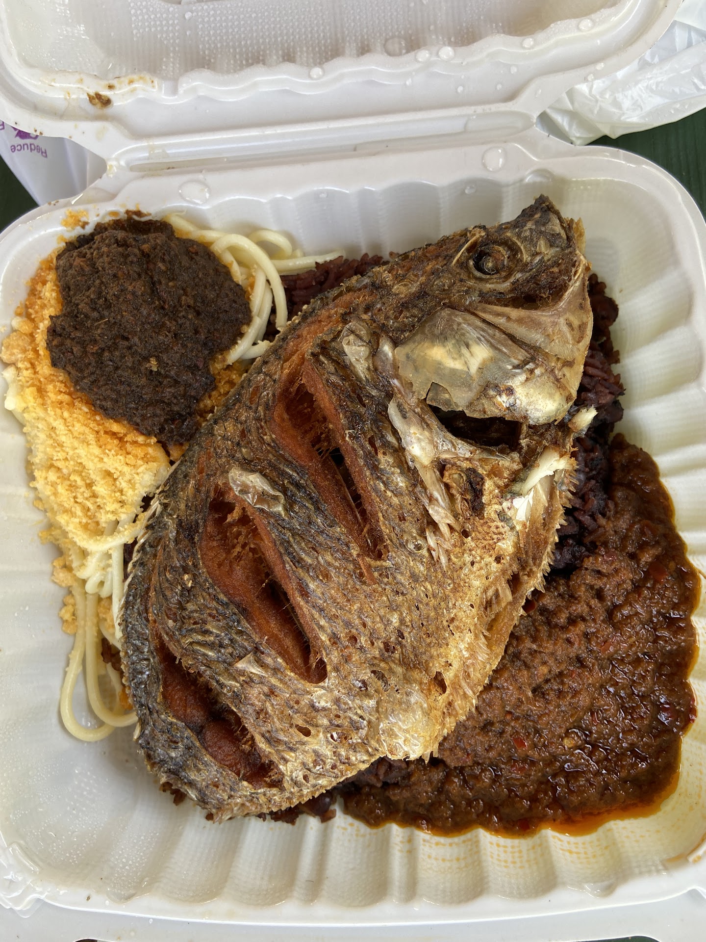 Read moreDelicious! And the staff are fantastic as well! We were looking for a good place to pick up some familiar dishes for our Nigerian friends who recently moved here and miss their cuisine. This Ghanian/Nigerian menu hit the spot! The staff was patient as we took some time to look through the menu and put together an order for our large group. Our friends were thrilled for a taste of home and really enjoyed everything we got, including jollof rice, fried croaker fish, spinach and egusi stew, okra stew, pounded yam, peanut butter soup, and all the meats--beef/goat/chicken. For my husband and I, this was our first venture into Ghanian/Nigerian cuisine. He got the Waakye Shitto and Talia with croaker fish (all amazing!), I got the spinach and egusi stew, and we had the opportunity to sample the other dishes as well. Everything was delightful, fresh, well-prepared, and wonderful flavor combinations. We will definitely be back! I will say that the food was spicier than I expected, due to my lack of experience with this cuisine. Just something to take note of, for anyone like me who is trying this for the first time. Eating the meats and/or stews alongside some pounded yam will help balance out the spiciness, for anyone who might need that tip. ;) My husband loves spicy food, and this was right...