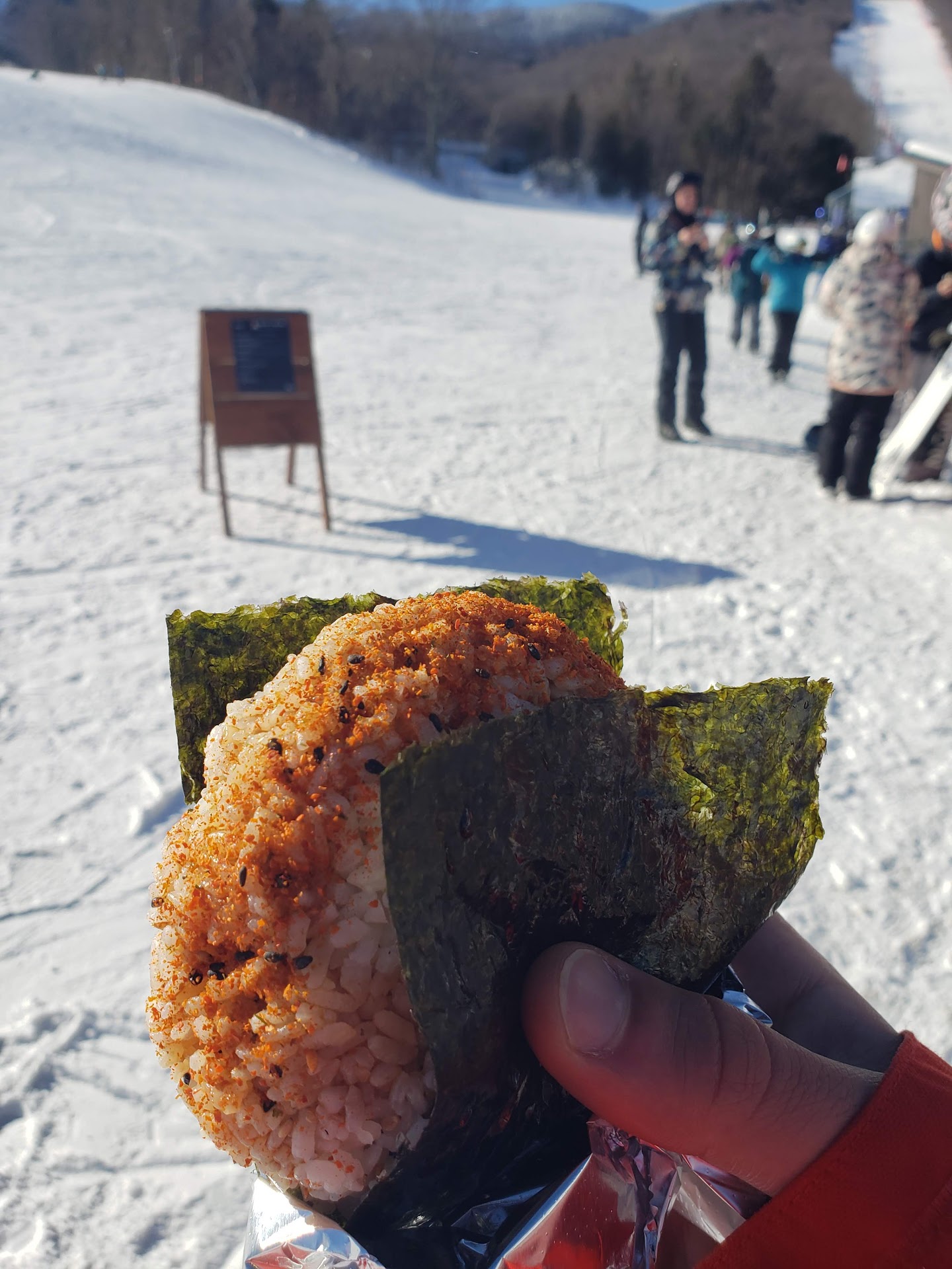 Read moreOmg!!! We loved their ramen at jay peak 8 years ago. I can't believe they expanded to rice balls to other ski resorts. The rice balls are delicious and huge. It will definitely satisfy a snowboarder appetite and continue riding soon after. Miso soup in a coffee cup is smart ...it's more than just soup, more like a broth. The dragon eel, pork belly chasu, mushroom seaweed is all good. Spicy tuna is canned tuna was to spicy for me; maybe a sweet mayo like Korean tuna salad might be better. Go eat the! Now I'm excited to return to vt ski resort...