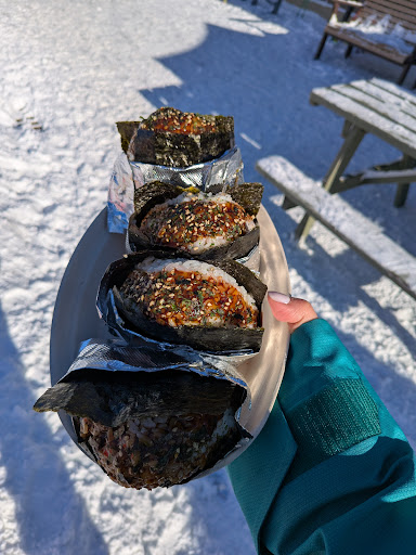 OMG, these onigiri!!! The ideal snack/meal for a day on the slopes... super fast and friendly service, warm and perfectly seasoned sushi rice inside a crispy aromatic sheet of nori, and tucked in the middle is your choice of fillings... spicy tuna, pork belly, plum, eel, shitake mushroom... every one we tried over the course of several days was amazingly delicious. Their miso soup - with spicy seasoning if you like it added, was also a great way to warm up. These guys are doing it right, and we can't wait to come back! Just wish they were open...