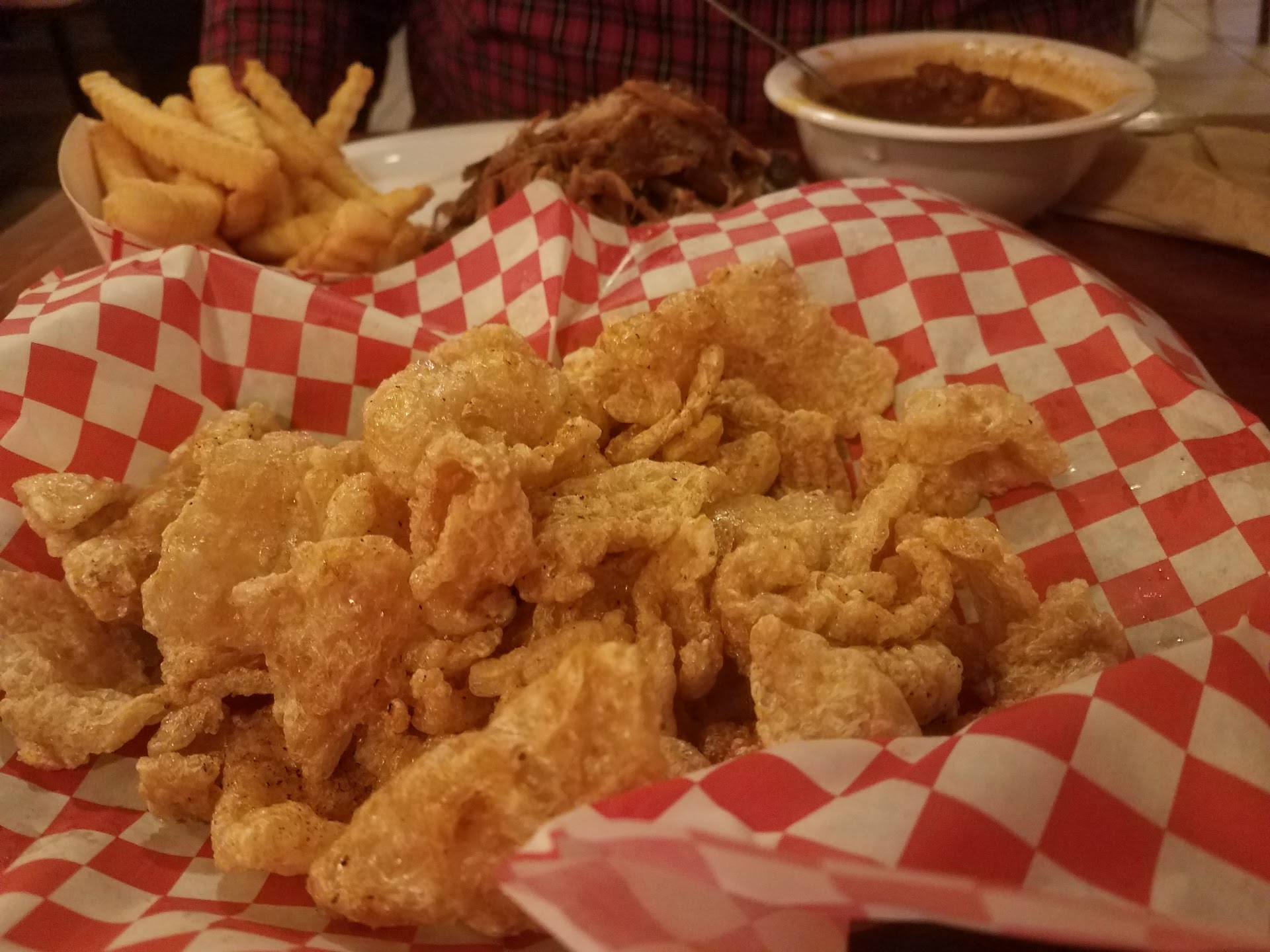 Ribs - Fall off the bone tender and packed amazing flavor. Brisket - Chopped, moist and tender. Pulled Pork - Tender has good flavor. BBQ Beans - This has chunks of BBQ and it was amazing. I love it! Collard Greens - Cooked down to the texture I love. Not salty, which was great.