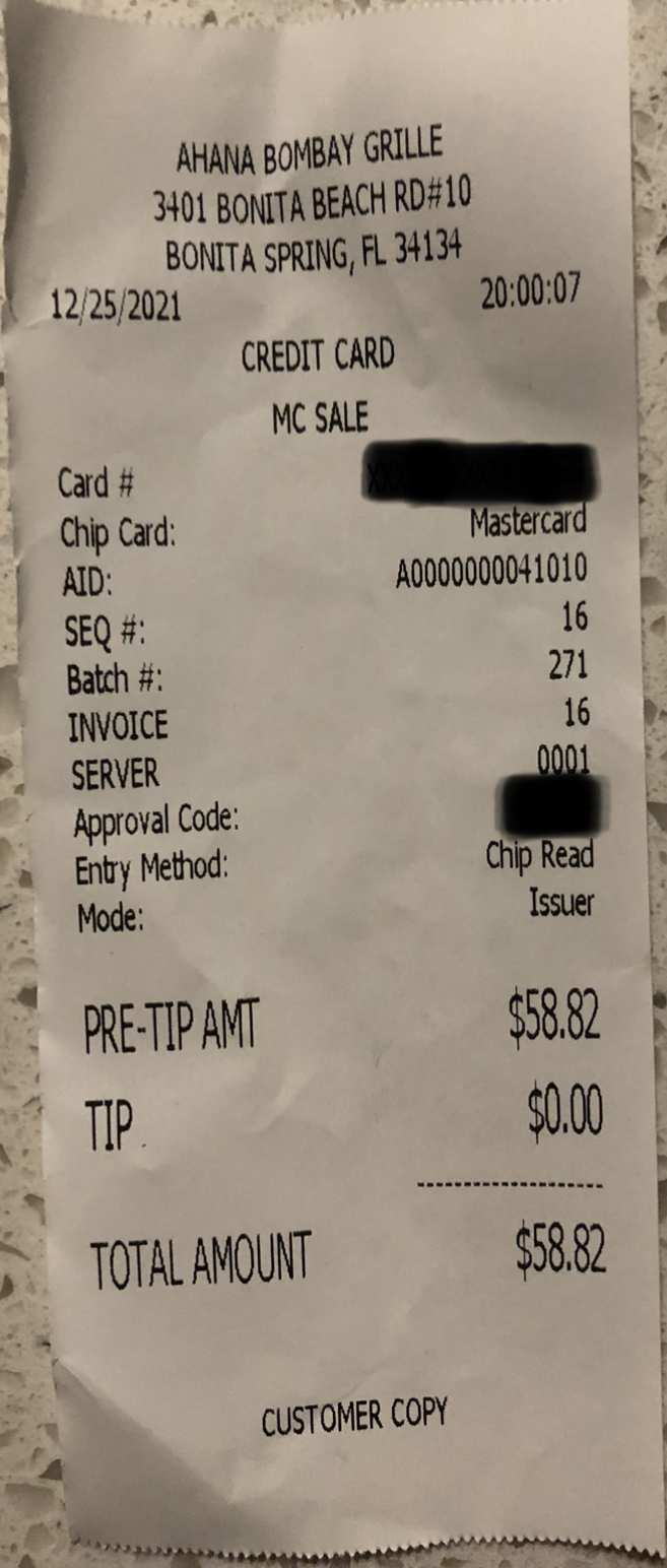 Read moreIf Google allowed me to put zero stars, I would. I am completely disappointed in this restaurant. I ordered one Chicken Tikka Masala, one Lamb Biriyani, and two Chicken Biriyanis, and every one of them was horrible. Every dish felt that it lacked spice and honestly salt too. They had no flavor at all and in my eyes do not deserve to be called Indian cuisine. Not only that, but every dish lacked meat. The biriyanis shouldn't be called "Chicken" or "Lamb" biriyani if you are just going to throw two tiny, tiny pieces of meat into some unseasoned rice. The Chicken Tikka too, lacked chicken, and desperately needed salt. Furthermore, the dishes are way overpriced for the quality of the food. I spent almost 100 dollars. Later, I called the restaurant in hopes of some sort of reimbursement for my poor experience, but the customer service did absolutely nothing. They led me on a wild goose chase when I tried to reach the manager of the restaurant and when I finally managed to speak with her she raised her voice in an awfully rude manner, kept interrupting me, and hung up in the middle of when I was trying to say something. I hope this review prompts the restaurant to improve their food quality and customer service. But until then, I would not at all recommend this...