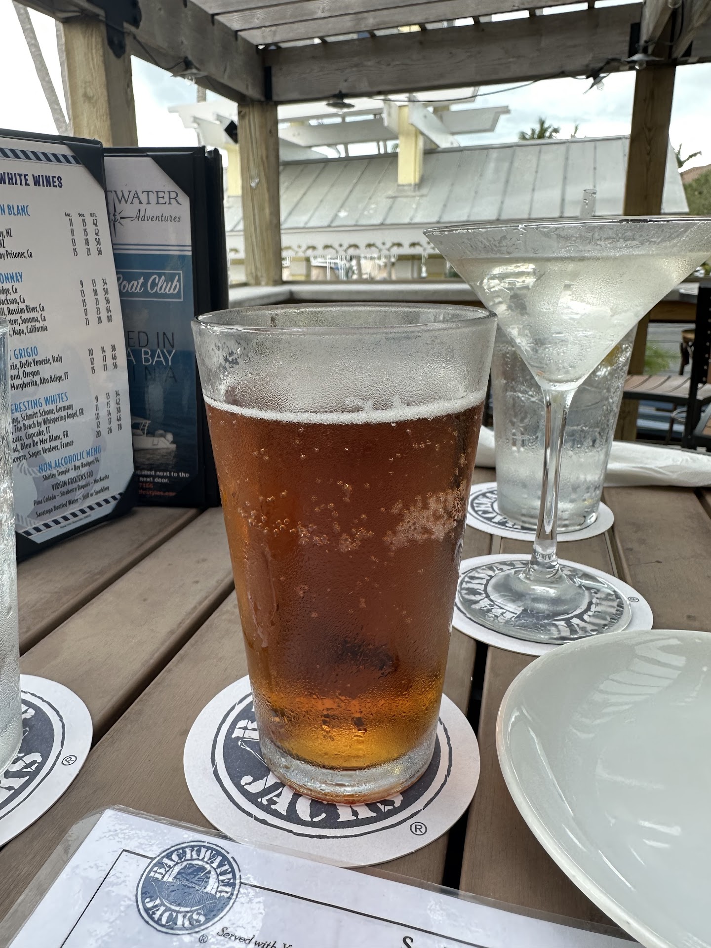 Let’s start with the atmosphere: Backwater Jacks is nestled right on the water, giving you those beautiful, breezy coastal views whether you’re inside or out on the deck. It’s the kind of place where you can relax, have a cold drink, and completely unwind. Whether you’re watching boats drift by or enjoying the soft glow of the sunset, every moment here feels like a mini vacation.
