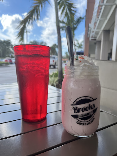 Read moreI can't believe this place uses the Brook's name! I've been to the Brook's Burgers in downtown Naples, FL, many times and was always pleased. My experience at this restaurant was entirely different. I had to skip breakfast to be at the hospital early today, so by noon I was famished. I had read the day before that July 18 was National Hot Dog Day and I had about 2 hours before my next appointment, so I decided to try out this location that wasn't too far away. On arrival, I saw a couple of people standing inside the front door perusing menus, but there was a sign saying "Seat yourself" so I wandered in past the front and saw 5 or 6 empty tables. Several of them were obviously not bussed yet, but a couple of them seemed clean. A waitress stopped me and told me to wait a minute. I told her that maybe she should change the sign, which she did as we retreated back to the front. A line formed out the door, and I struck up a conversation with our neighbors about how busy it was despite being off-season as we amusedly watched her running around trying to clean 6 tables at once. After cleaning them, she plopped menus on all the tables and went to fetch more orders, so we guessed that was our signal to seat ourselves (a word, smile, wave, or some sign would have been appreciated).