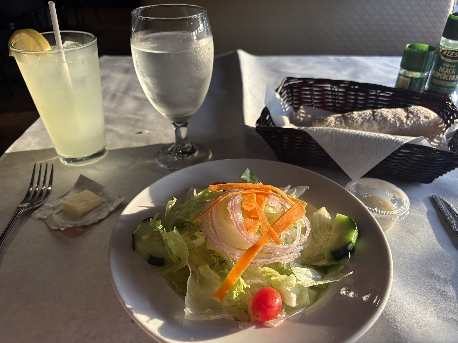 Read moreI was very pleasantly surprised at our experience here! First off our tea was brewed and not a powdered mix. Very good. The bread they brought out to the table was nice and crusty on the outside and pillows soft on the inside. The bread was really good. We also ordered their cheesy bread which comes with a marinara dipping sauce. Very simple but really good. Would definitely order it again. My meal came with a Caesar salad. Now a salad is a salad - but nope, you'd be wrong in thinking that. Normally restaurant salads can be lacking but this was truly the best Caesar salad I ever had. It was fresh and the dressing WOW, was awesome. Not a leaf was dry but none of it was saturated, but perfectly distributed AND it was the tastiest dressing I've ever had. I could have stopped there and been content. I had the manicotti which was very good. We also had a pizza which my husband who loves his pizza declared it as awesome. The owner I assume greeted us and was very friendly and our waitress always had a smile on her face, was very pleasant, and we had great service. I would definitely recommend this place and I will definitely go back. You'd be missing out if you didn't give this...