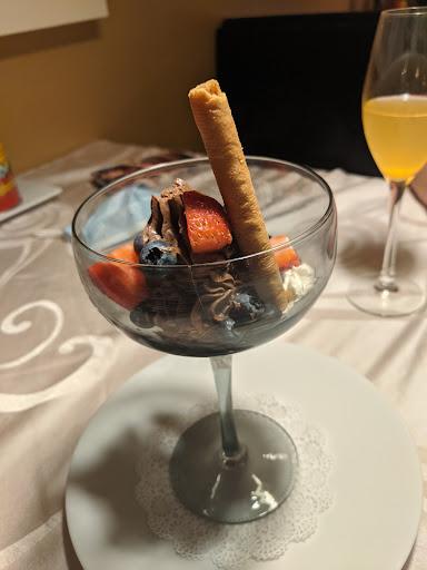 Outstanding gem of a dining experience in North Naples, the best in the area! The service was impeccable in this locally owned, bistro style restaurant. The theme is French/Mediterranean, with a flare all it's own. Service was top notch: attentive and informative without being too intrusive. We had the sparkling water, a Bellini, and a lovely Pinot Noir to start, along with freshly baked warm bread served with EVOO/balsamic vinegar/french herbs/parmigiana cheese for dipping.