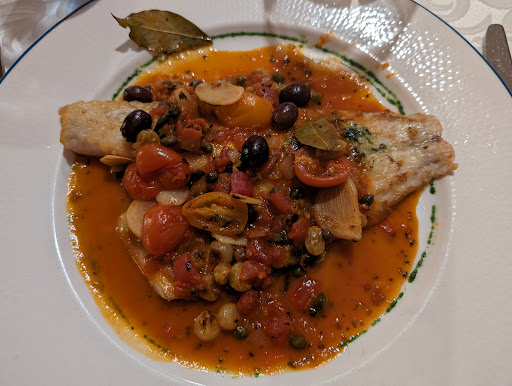 I had the Loup De Mer Monegasque. (Only pic I could take without being obtrusive). It was a 5 star meal for me! The fish (Mediterranean Sea Bass/Branzino) was perfectly cooked. But the compote & sauce that topped it was, literally, one of the most delicious I've ever tasted. I'm Italian, and this topping was reminiscent of a caponata, minus the eggplant & celery. But the addition of the sweet raisins, sauteed along with the nicoise olives, baby tomatoes, capers, shallots, basil and even bay leaves in the Sauvignon Blanc sauce, made it extraordinary. I would say it's my second favorite fish meal ever! Only behind the Low Country Crispy Flounder with Apricot Sauce at Anson's in Charleston.