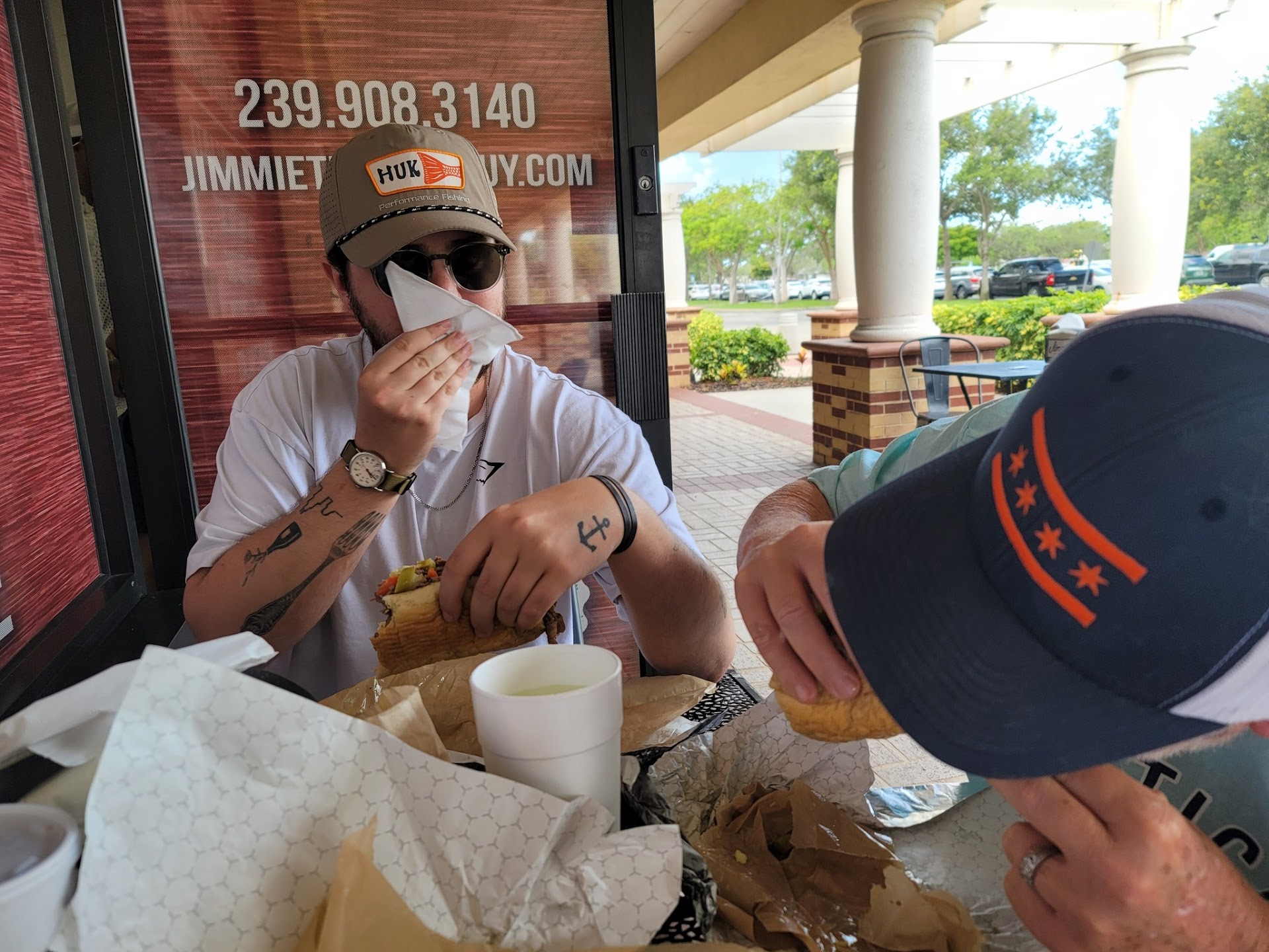 Was vacationing in Naples, FL and looking for a good Italian beef sandwich (I am from Milwaukee, WI, but regularly go to Chicago to try many different foods and Italian beef is one of our family favorites, and we have had MANY beef sandwiches from a large number of longtime Italian beef joints there). We had a different spot in Cape Coral for several years that is good, but not open the last few times when we visited, even though the hours listed stated that they should have been open... So I googled Italian beef near me and discovered Jimmie's. We visited on 06-15-2023 and were not disappointed!!! Store hours stated that they opened at 11am and we were the first customers of the day. I could tell by the smell when we walked in that this was the real deal. Ordered a mild beef with delicious marinated sweet peppers, another one with hot Giardinera, a side of Italian Stallions, and fries with a cup 'o cheese. Let me tell you, this was the real deal...simmered beef with 'gravy', the correct Italian beef rolls and true Chicago Giardinera...It was absolutely delicious! I had asked the young man who took our order if the owner was a native Chicagoan, and he informed me that himself and his father were the owners and transplants from the Chicago suburbs! Authentic, delicious and worth every penny and every mile you travel the get one of these great sandwiches! They are located in a large strip style mall, with free parking right at the door, indoor (table and counter, for those who know how to eat a Chicago Italian beef) and outdoor dining, super clean facility and just as clean restroom. They are also very friendly, and quite busy too, but your order is filled in short order, so you will not be standing around getting hangry... If you have never had this type of sandwich before, I would suggest that you try it at least once...you will not be disappointed, and may become your Midwest...