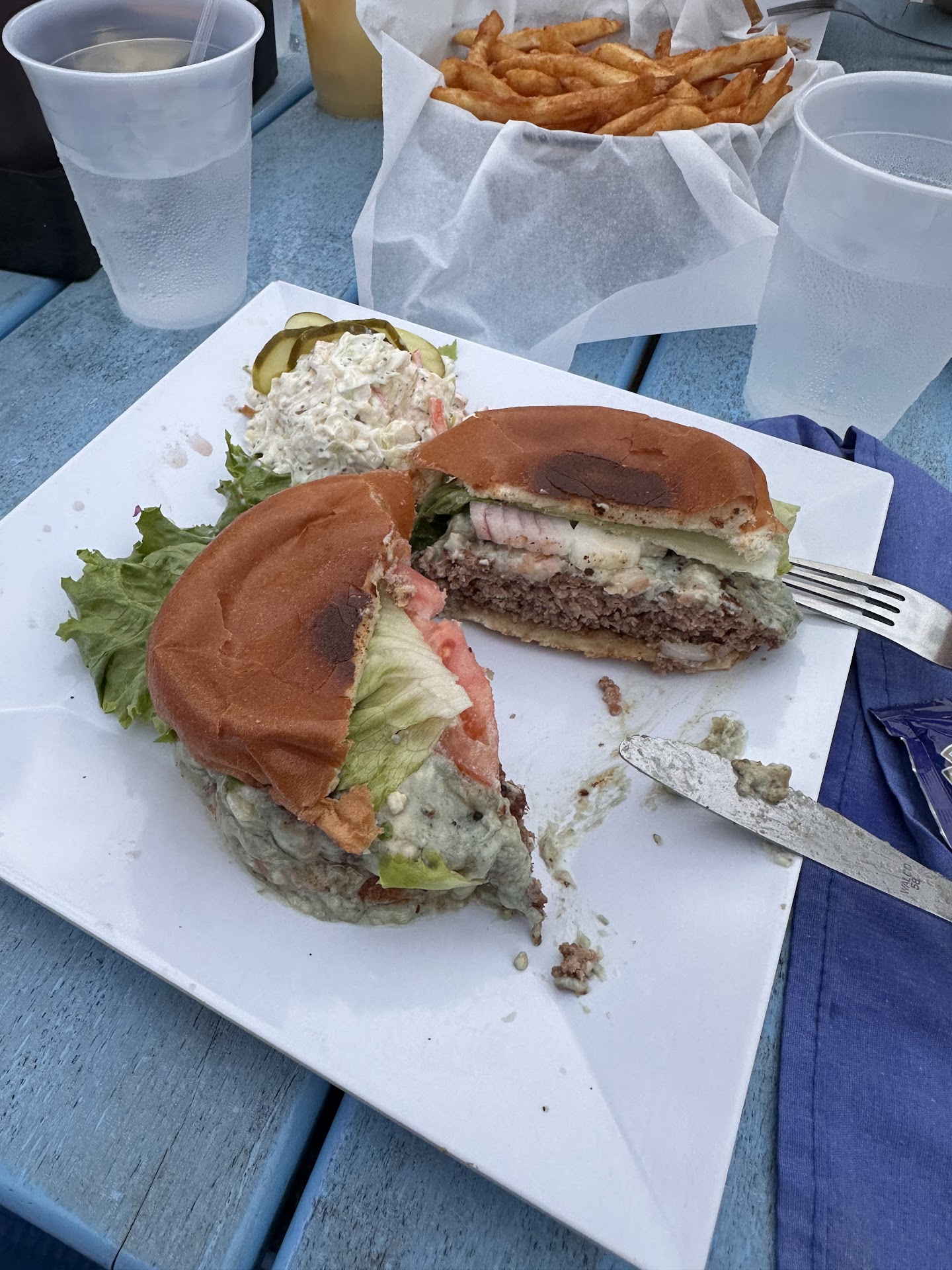 Read moreNOT impressed at all. Half off is a joke. To begin with, you must order a beverage, not just water. Beware as they do not warn you that they charge for refills on ice tea; lemonade; pop(soda). At $4.50/drink which are served in SMALL plastic cups which are mostly ice, that adds up really fast!!! ESPECIALLY when you aren't informed you're being charged for each!! The drinks with alcohol are costly too, even with the slight "happy hour" discount (that is a joke). My appetizer of chicken quesadilla was large but the chicken was tough and chewy, I picked it out, couldn't eat it. The other meals were average, nothing exceptional. Service was slow and they weren't that busy. Server took quite a while after our meals were delivered to check back with us. Although sitting by the lake is nice, it doesn't make up for everything else negative. We would not go back nor would I recommend this place. Far too many other much better, more reasonably priced...
