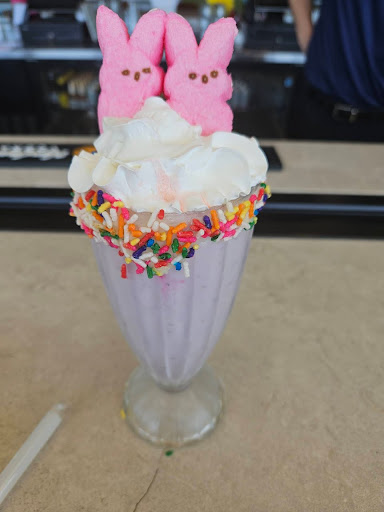 First offâletâs talk about the Easter Super Shake. This wasnât just a milkshake, it was a spiritual experience served in a glass. Topped with rainbow sprinkles, a mountain of whipped cream, and two pink Peeps staring into my soul like sugary gatekeepers of joy, it hit every sweet tooth I have and then invented a few new ones.