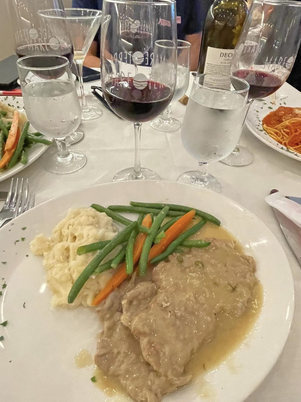 The mains were pasta bolognese and veal Marsala. The bolognese was tasty and the pasta nicely al dente. It’s a good thing since that was the only dish we ordered that was acceptable. The veal was almost tasteless and the potatoes were mediocre. Marsala has a strong and distinct flavor profile that was completely lacking in the dish served to me. The spinach was actually well done and tasty and a nice surprise.