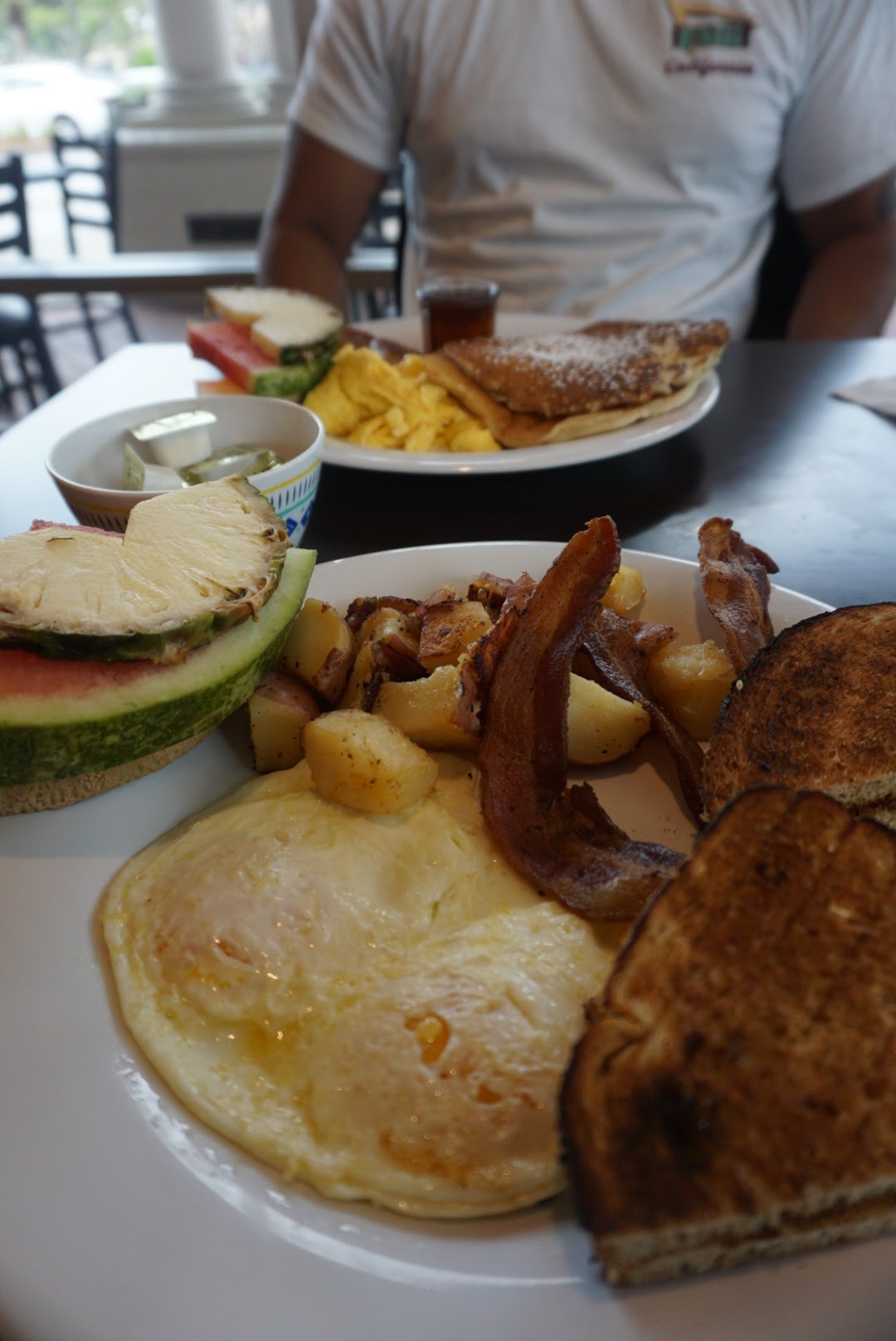 Read moreThis was the first time my wife and I came here for breakfast. We saw many good reviews but we were very disappointed. I ordered the short stack platter and my wife got a yogurt parfait. The server placed our order on the table and was gone without asking if we needed anything. I needed some butter for my pancakes and after a while without seeing our server I asked Ray at the door and he got it for me. The pancakes were hard and actually cracked apart when I tried to move them on my plate. I waited to tell the server but she never came back to check on us til the rest of the meal was finished. When she did come back after we were done I told her the pancakes were not good and she said what's wrong with them and I showed her how they were dry and broke apart. She asked me if I wanted them to make new ones but we were done with the rest of the breakfast so I said no thank you and she said ok then. The other servers were going around and freshing up their customers coffees and she never came back and asked if we would like a refill. I was also charged full price for my meal that was not edible. My wife's order was very good and other customers breakfasts looked delicious so maybe mine was a fluke. I told Ray the manager of our experience and he said please give another try and ask for him when we come back but I don't think we...