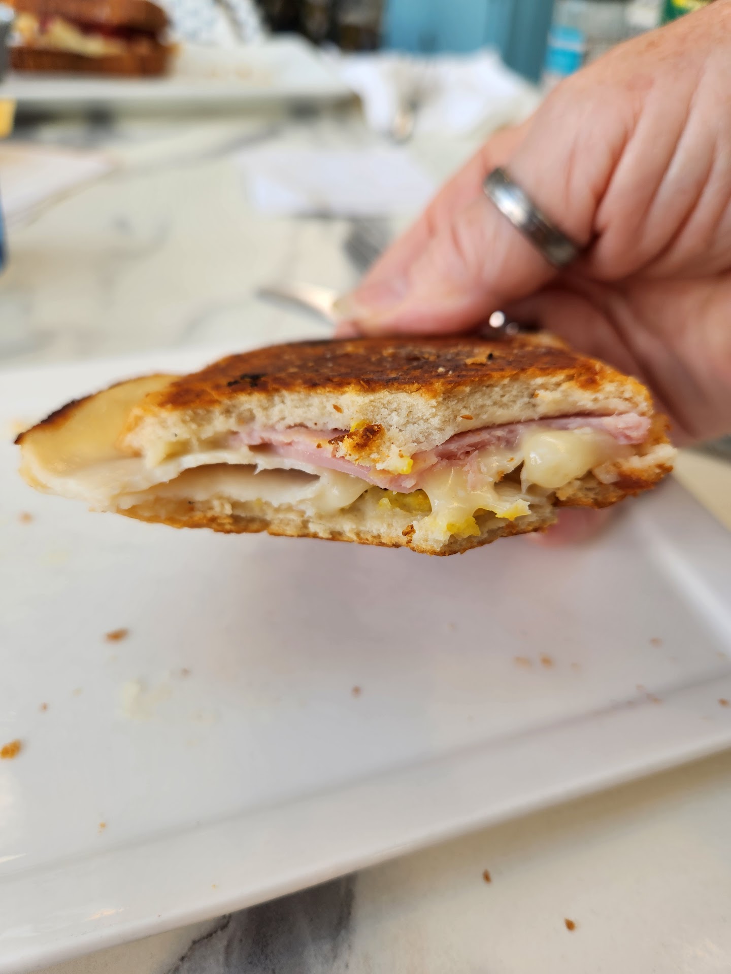 As for the food—well, I got a tasty, overstuffed Reuben and a sad, lukewarm soup. My wife, however, received a Cuban sandwich so offensively under-filled that it should be classified as a hate crime. One lone, pitiful slice of lunch meat that didn’t even cover the bread. This time the strangers next to us enjoyed a hearty laugh at our expense.
