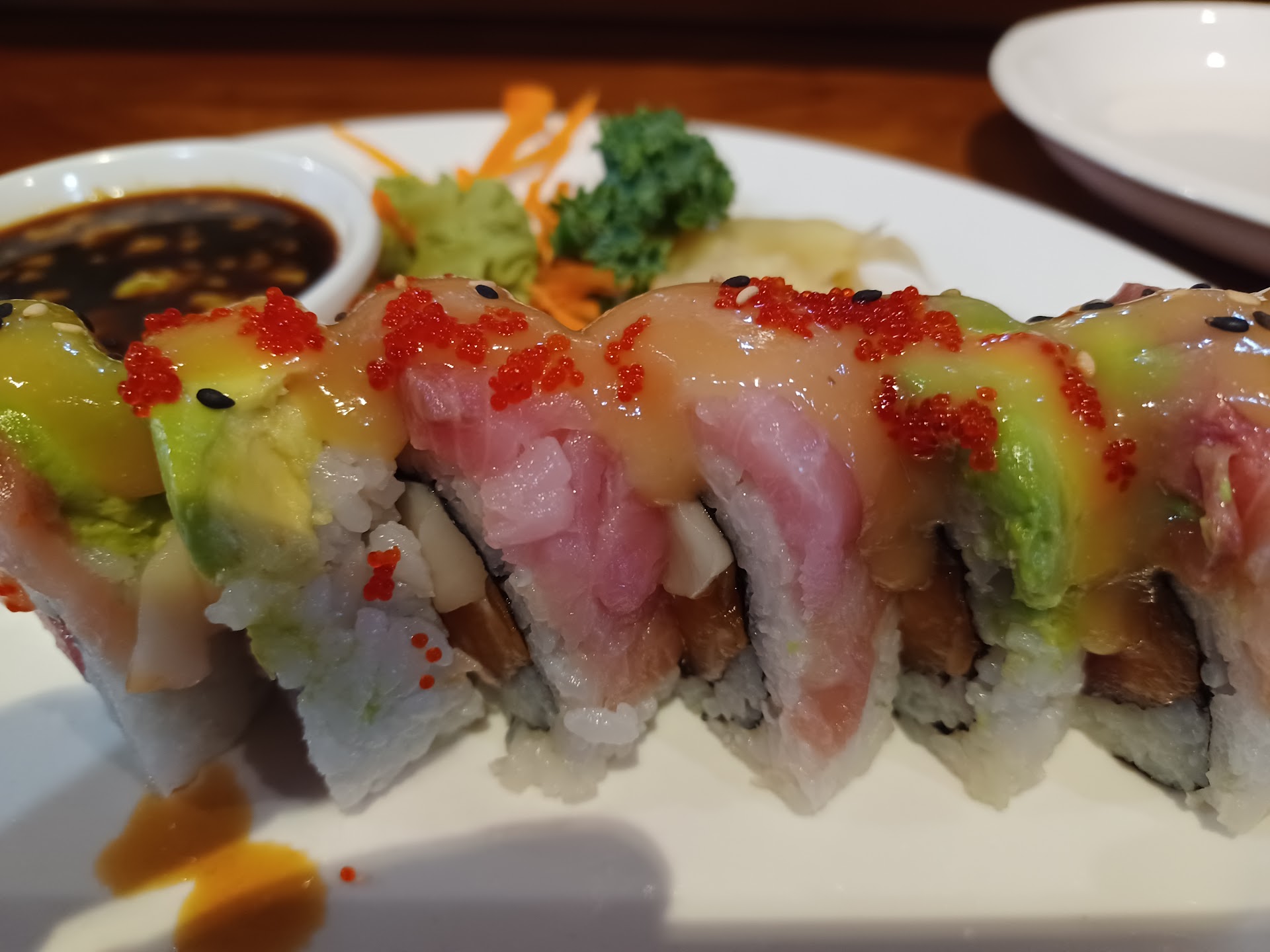 Read moreUpdate: Have been a patron of this restaurant for years, even before they were in the current location. Unfortunately, had to downgrade to 1 star after lunch there today. This change in rating has nothing to do with service, but with food safety. I ordered sashimi mori and specifically asked for it to be served on a plate, no ice (I just don't like ice chunks with my sashimi). When it arrived, it was served on a plate with what looked like bed of vegetables, as is traditional with sashimi. As I consumed pieces of the sashimi, I realized that under the thin bed of shredded carrots was not a vegetable, but a bunch of twigs (for lack of a better word). I asked the server what this was, and he said it was for decoration. I asked if it was edible, and he said no, and could not identify what it was. I will post a picture. As this is not safe, I stopped eating it right away and went onto my sushi. This was fine, until I got to the ikura (salmon roe) sushi, and it was definitely not fresh. It was mushy and many of the roe pieces were not intact...either this was previously frozen or old. I am posting pictures.