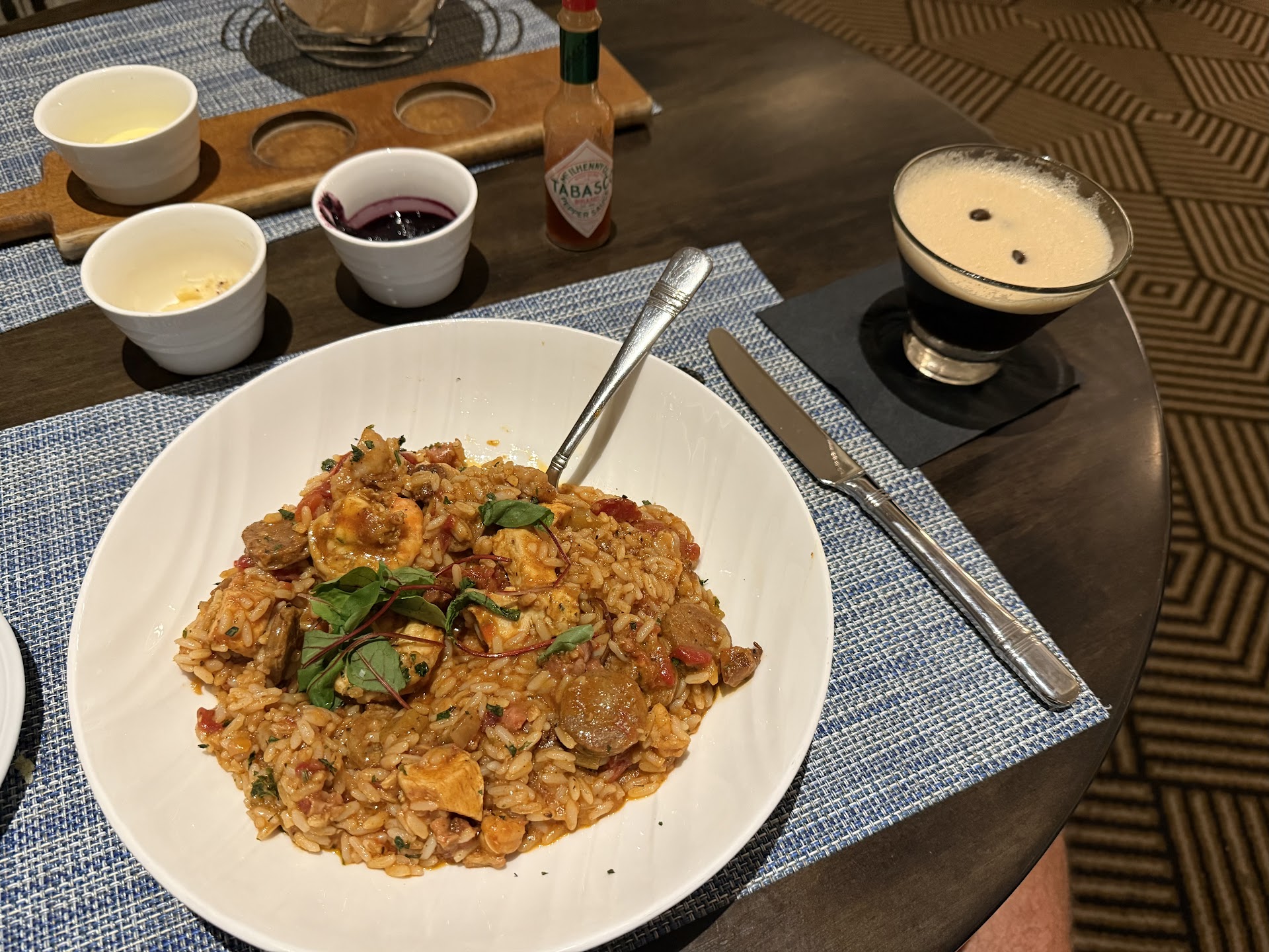 The ALLIGATOR JAMBALAYA was a burst of flavor, clearly prepared with passion and attention. Everything was cooked to perfection. The Espresso martini from ALEX @ Mangroves bar was out of this world!