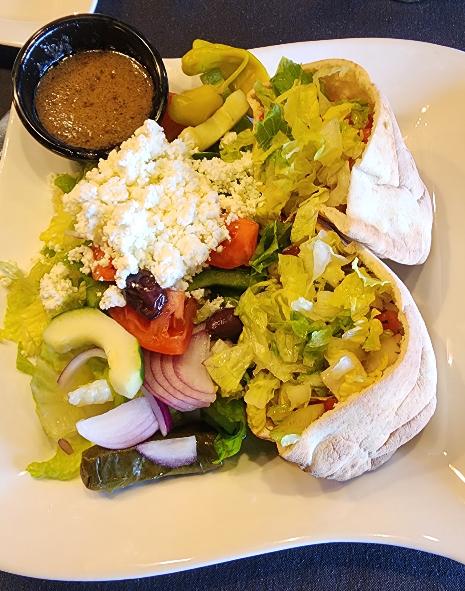 Complementing the pita was the Greek salad, a masterpiece in its own right. The medley of crisp lettuce, juicy tomatoes, cucumbers, olives, and feta cheese was drizzled with a tangy vinaigrette that tied all the elements together. Every forkful was a celebration of Mediterranean flavors that transported me to the shores of Greece.