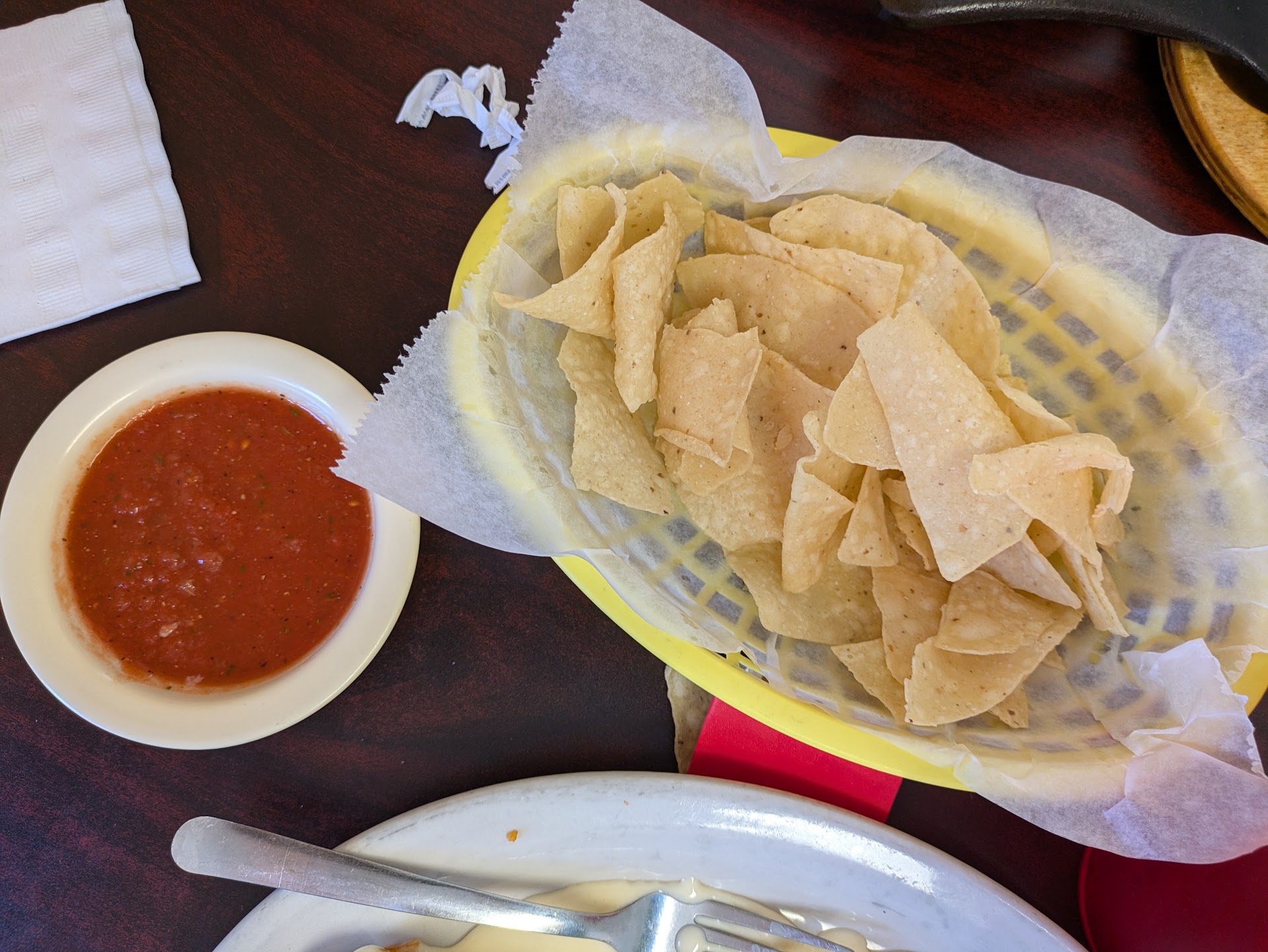 Read moreVisited on Friday night. Busy but not packed. Server greeted us quickly who said she would clean a table for us. Came quickly and used a really wet cloth to wipe table but left table wet. Brought chips, salsa, rollups, and extra napkins quickly. Chips ok but salsa was thin and tasted too much like tomato juice. Taco shells were of the thicker style but not enough to contain the watery ingredients. Seems like tomatoes and lettuce were added wet. Beef was good. Chicken flavorless. Best part was a big $8 house margarita on special. Enchilada sauce was really good. Tasted almost like mole. Will try again at...
