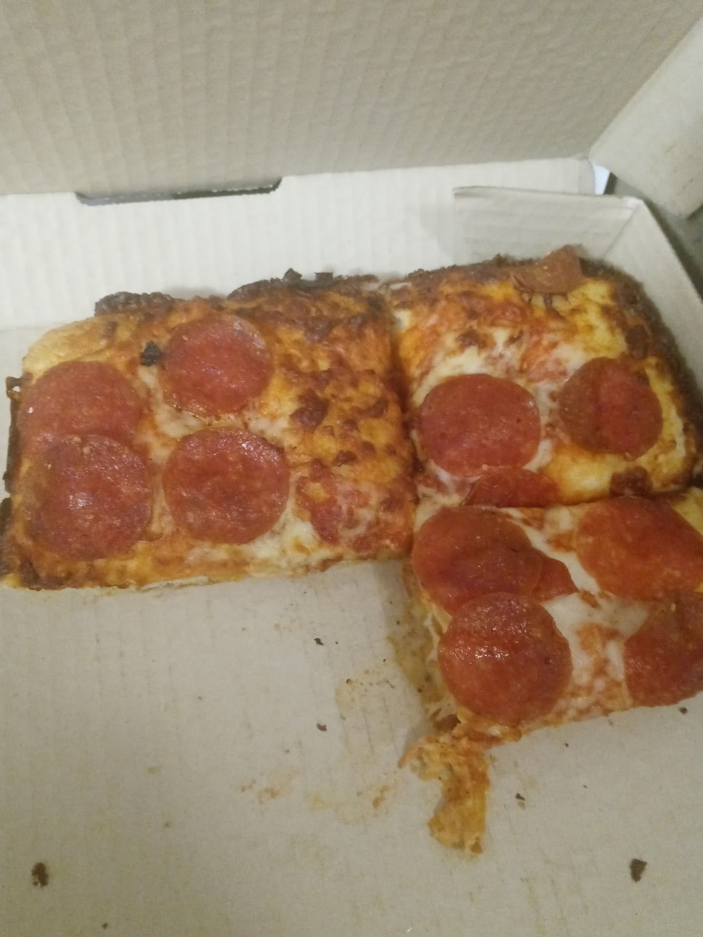 There are many kinds of people who work hard in bad weather that are obliged to drive and deliver pizza's for cranky people. This person was so kind and understanding I wish could have stood up enough to give a big thank you hug to. This review will never change and will hopefully touch a future heart of whomever reads it and decides to leave a big tip. This was a special occasion for me as I had only returned from the hospital for the second time in a month and I wanted to watch College football without cooking. This was not a normal action for me because I usually bake a frozen pizza so this was a very special and out of budget treat.