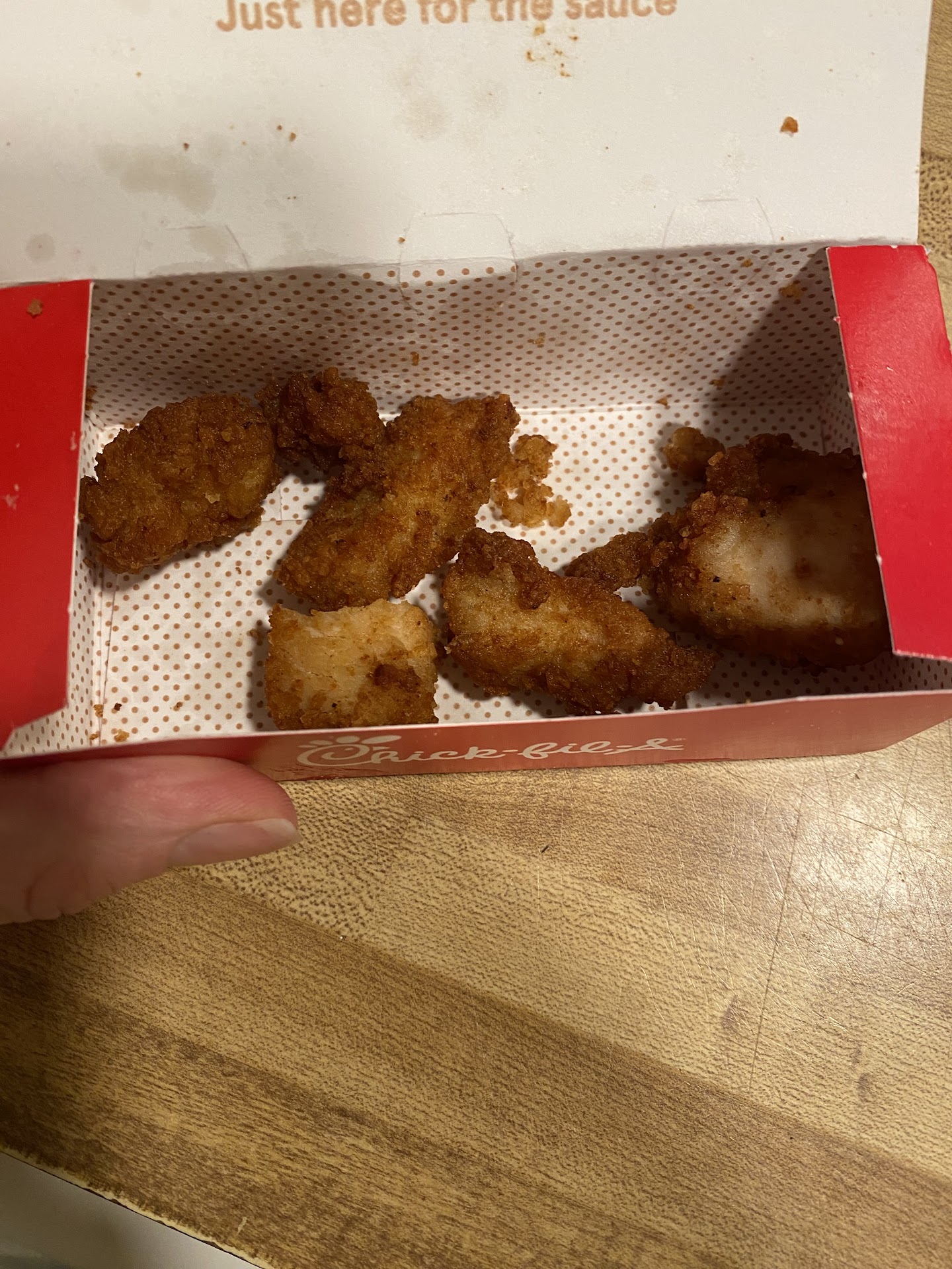 The food was pretty good! Not sure if it was what at the level that everyone hyped it up to be but it was close. Pretty tasty chicken! My drinks, unfortunately, met a end over my all weather floormats because two spot drink carriers are not force neutral. (Set it one way and it will tip when you turn, set it the other way and it'll tip when you stop/go) I tried to support the drinks as best I could but a gentle turn tipped them over and both lids came off and spilled everything all over my floor. I should have just put them in my cup holders, pretty bumming...
