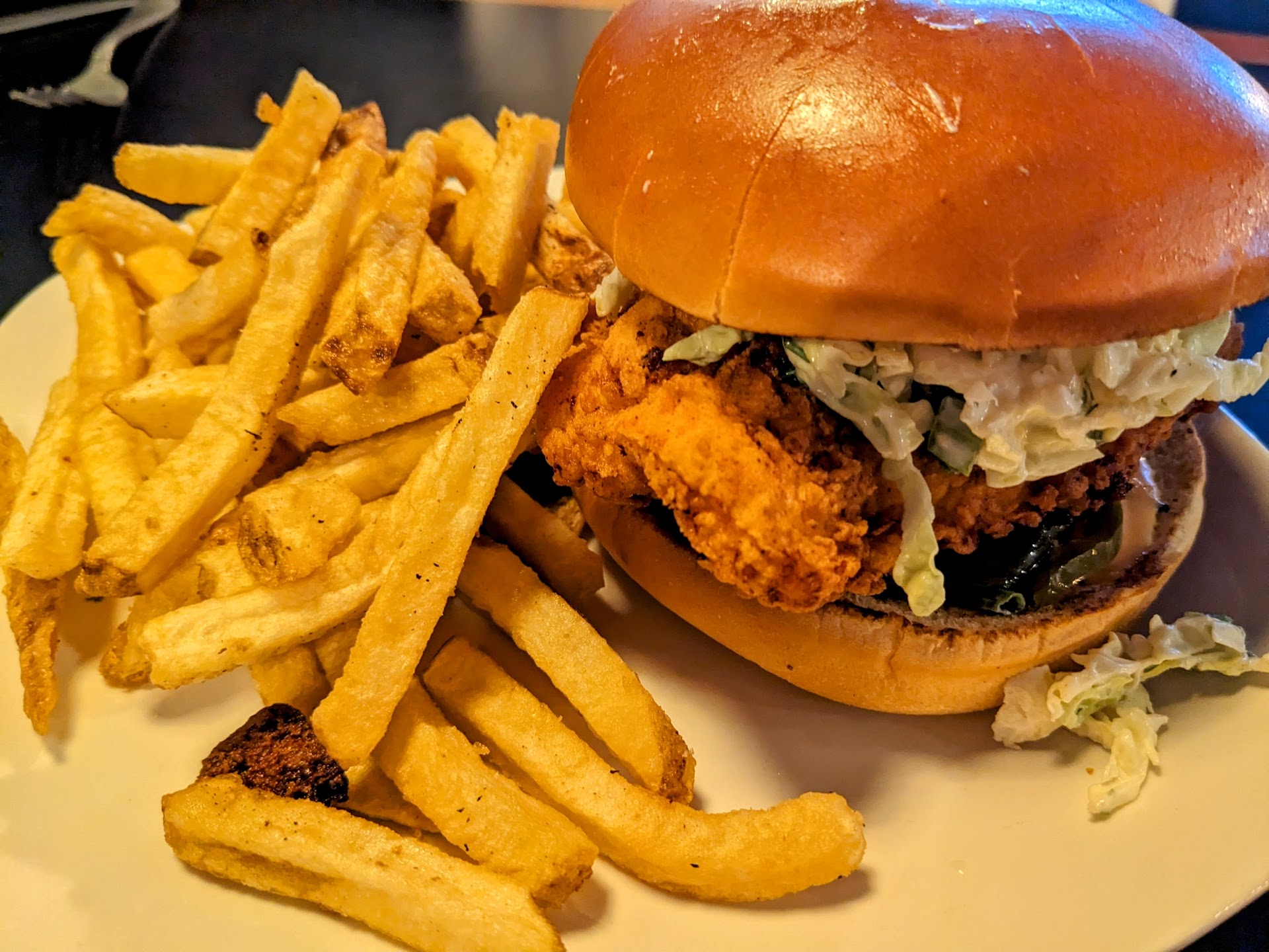 While we ate and drank, the bartender was not behind the bar. He was busy taking orders out to other tables, and we unfortunately lost all our customer service. When the bartender did return behind the bar, he walked past us, not checking our status, and worked on getting dishes into the dishwasher.
