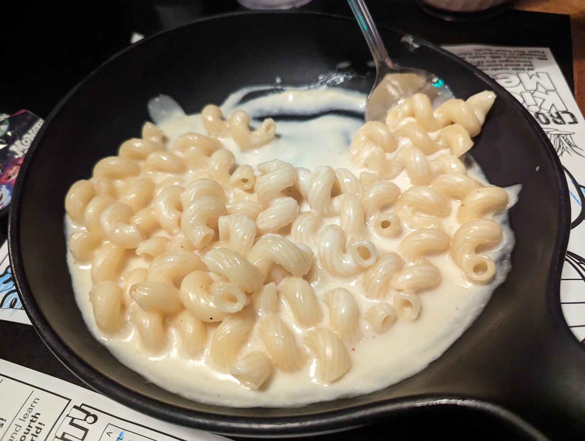 Kids mac & cheese tasted nice. It is not Kraft, they clearly made the sauce. Tasted like Gouda, I think. As an adult, I would eat it.