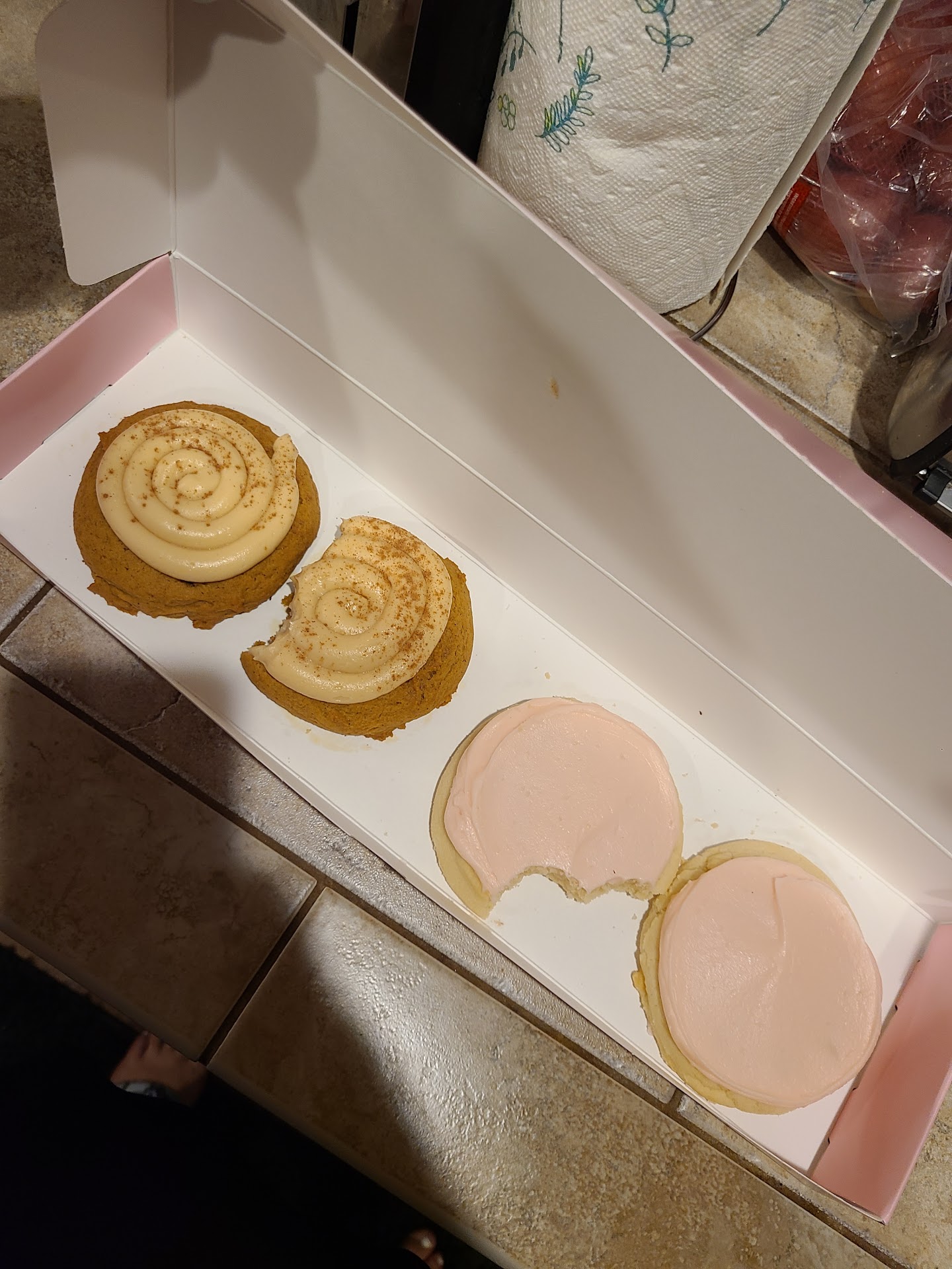Read moreI've had great experiences with Crumbl. Mostly. Last time we went, we ordered online 30 minutes before showing up, and then proceeded to wait an hour to get our order. However, it was extremely busy, so that's why I'm not taking any stars away. I totally understand what happens when a bunch of people order at once! So because they were so busy, I won't post a photo of what the cookies looked like that time (they weren't a mess or anything, but I know that's not what they typically look like), so I'm posting a photo from the time before that, which is more typical. 😁 Crumbl has the most delicious cookies EVER, and they change every week. In a way, that's a very bad thing, because it's a whole lot of extra calories for me! I highly recommend, but try to show up in the middle of the day, and not in the few hours before they close, which seems to be their...