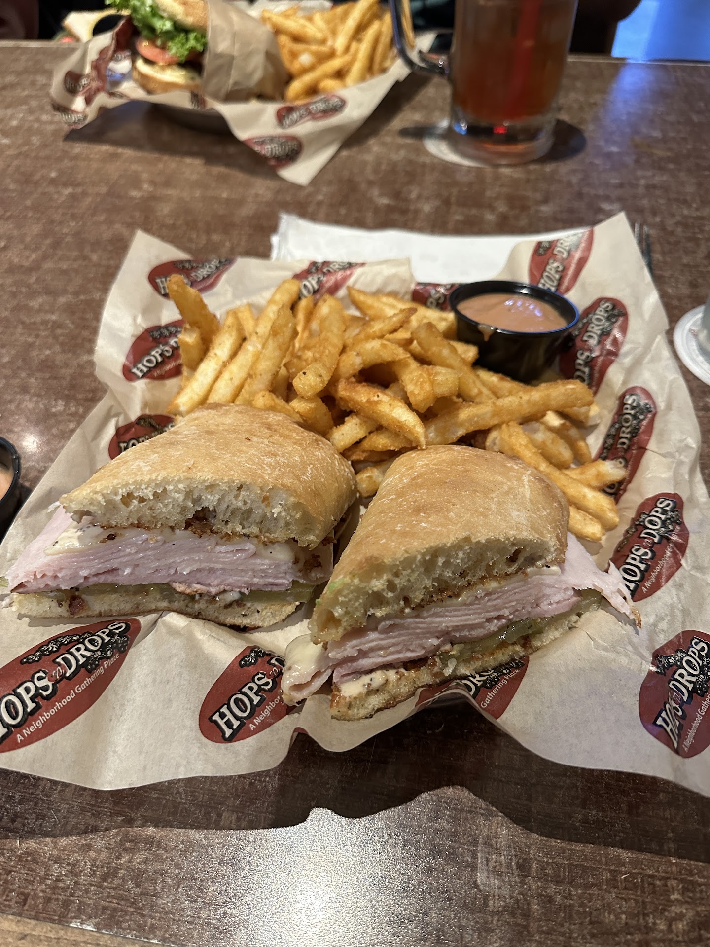 We usually love Hops and Drops. Unfortunately the service received today by our server was so awful that I decided a review needed to be written. As a 5+ person, table. We are always extremely patient with our servers because with a couple of us have worked as service workers. We know how hectic a larger group can get, with multiple requests going on at once and different tabs. Tonight Our server Kathryn ignored various requests from our table, brought out 2 orders wrong and forgot my order all together. After asking us to repeat our order 3 times, the items were unfortunately still wrong. When we figured out our meal situation we were brought our check, minutes after receiving the first orders. Iām not sure about anyone else but none of us, even when swallowing our food whole from being out walking all day, EVER have ate in under 10 minutes. We are extremely disappointed with the experience and service we received today as everyone sitting around us seemed to be having a regular dine in experience. We were not granted that. Definitely would not recommend to eat here if you have a larger group or around dinner time when they are a little busier, in order to avoid a similar experience to ours. And THANK YOU to all of the fellow staff at Hops and Drops that saw the discomfort we found our selves in and stepped up to bring us the correct drinks and entrees and checking in on us when we assumed we had been...