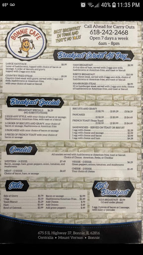 Read moreThe orginal Bonnie cafe in Bonnie got a makeover and added on. The traditional look is gone and more updated look with a newer traditional look of other places. Kids and I always loved the fresh made French fries but those are no longer available and now off the new menu. Very sad to see those go. Bkfast food still tastes the same kids said, but also ordered 1 large cheese pizza for 2 and they complained the crust was doughy I tried a bite and yes it was. I was brought out mashed potatoes that had dried thick crusty edges in it. They did replace. This was our family favorite place to eat, Bring back the home made fries. 2 Waitresses were exceptionally great. Denise and Kayla, had it not been for them we would not gotten recorders or not been able to pay my bill. I was ignored by 4 others while I was at the register to pay and 1 stood right there by me. Not good otherwise Bonnie cafe has always been a family environment to go and enjoy home cooked food with out the cooking yourself. It did say the are in need of help and hiring so hopefully soon they will have the hired help...