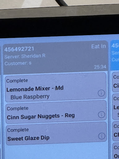 Ordered two regular pretzels online and scheduled my pick up for a half-hour later. When I arrived at the appointed time, I was advised by the employee on duty (the only employee in the store) that she was backed up on orders and mine would "take some time" before it was ready. Other customers in the store said they had been waiting for more than 20 minutes and there was a car in the drive-thru waiting as well. This sole employee was working very hard in the kitchen preparing orders while also working the counter and drive-thru. The store was clearly understaffed which is the same experience I've had previously at this location. Very frustrating. The pretzels themselves, once I received them, were delicious. So, kudos to the employee for upholding product quality despite the terrible customer service situation...